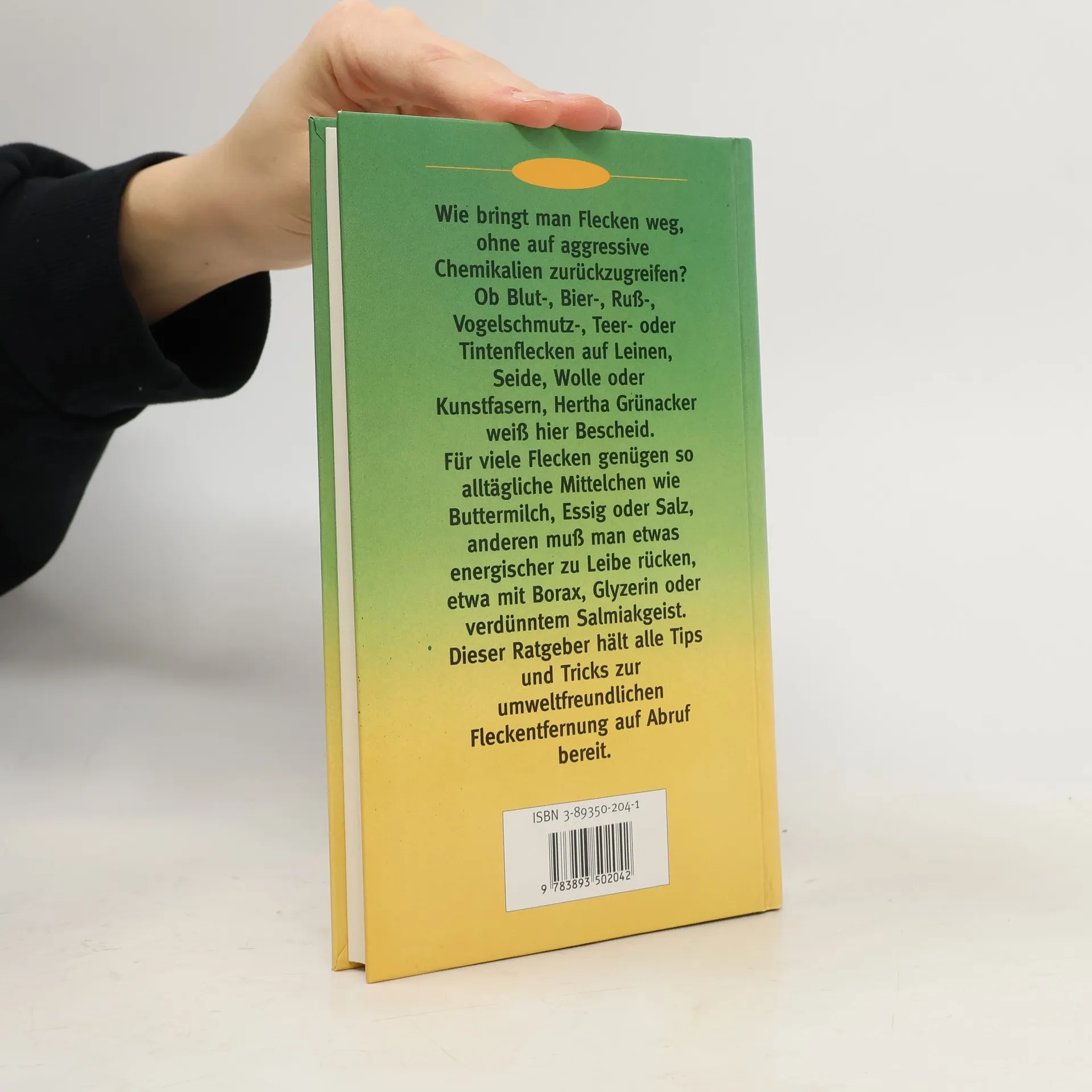 Führt alphabetisch 39 Arten von Flecken auf und beschreibt, wie man sie mit möglichst umweltfreundlichen Mitteln aus unterschiedlichen Stoffen entfernen kann.