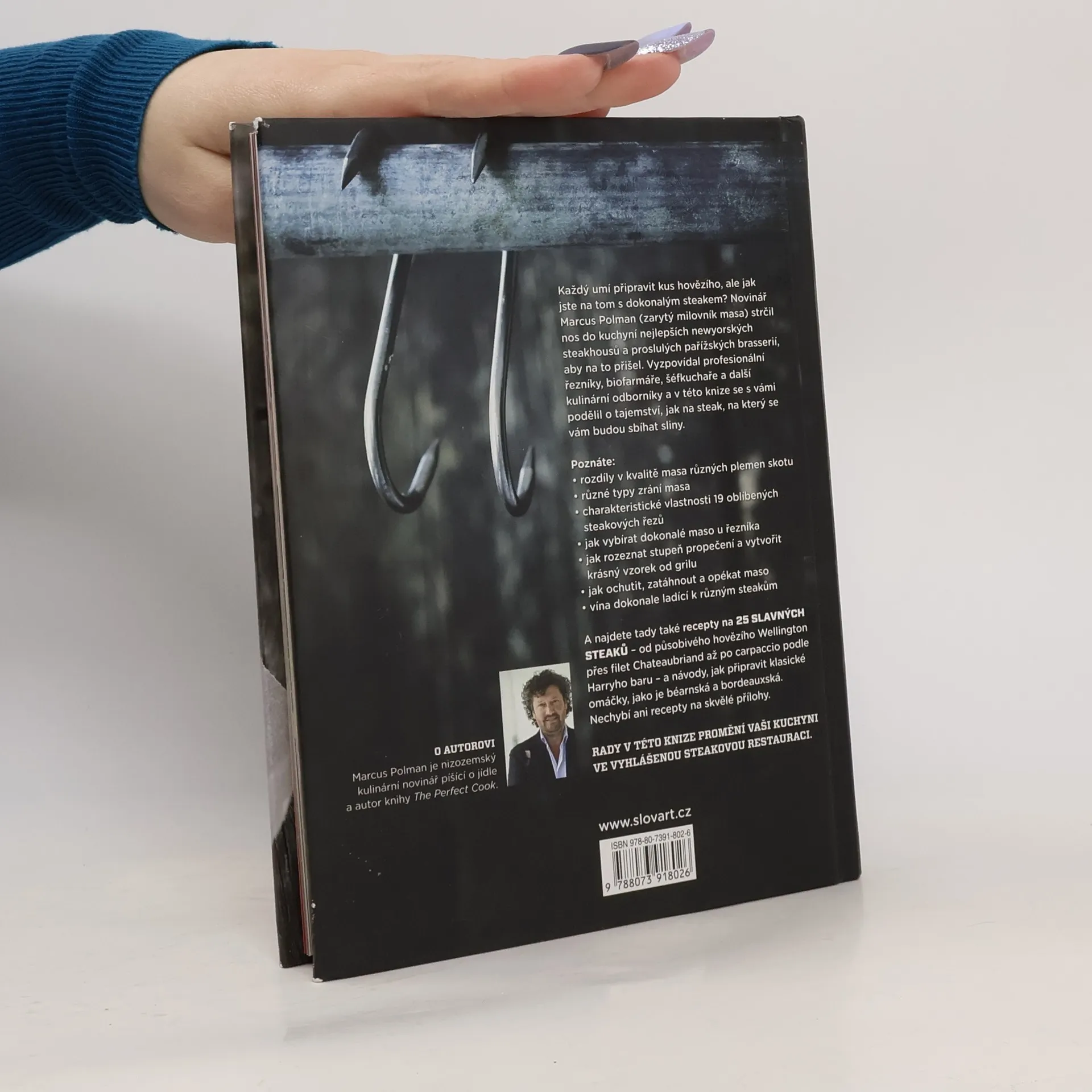 Pokud si rádi pochutnáte na dokonalém šťavnatém steaku, podávaném se zlatavými hranolky a domácí bearnskou omáčkou či s bílým pečivem, které výborně saje šťávu, je tahle kniha pro vás kulinárním pokladem. Najdete zde 25 slavných receptů, například na hovězí Wellington nebo carpaccio podávané v baru Harry's. Jistě vás zaujmou také informace o zvířatech, z nichž maso na steaky pochází, a o bourání masa na jatkách. Určitě oceníte i triky na kuchyňskou úpravu masa – autor je získal při mnoha rozhovorech s chovateli či řezníky a renomovanými šéfkuchaři ve slavných restauracích v New Yorku, Paříži a v Belgii.