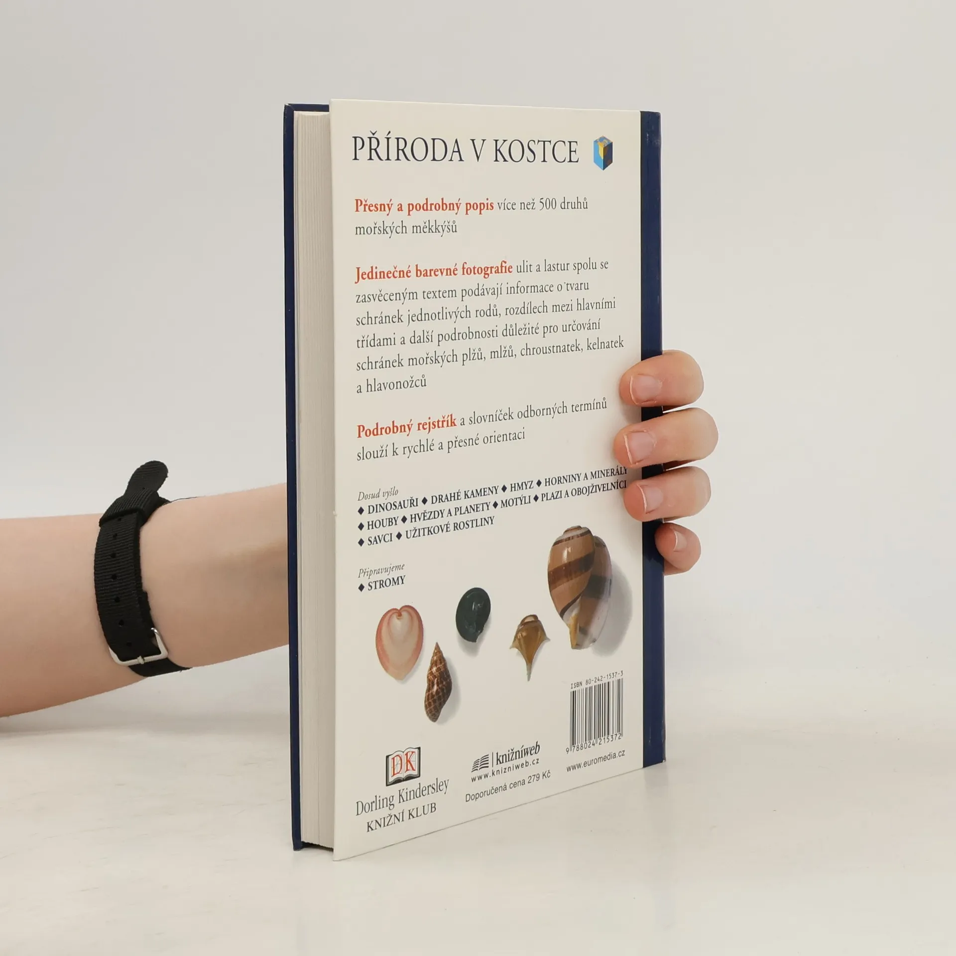 Příroda v kostce Přesný a podrobný popis více než 500 druhů mořských měkkýšů Jediněčné barevné fotografie ulit a lastur spolu se zasvěceným textem podávají informace o tvaru schránek jednotlivých rodů, rozdílech mezi hlavními třídami a další podrobnosti důležité pro určování schránek mořských plžů, mlžů, chroustnatek, kelnatek a hlavonožců Podrobný rejstřík a slovníček odborných termínů slouží k rychlé a přesné orientaci