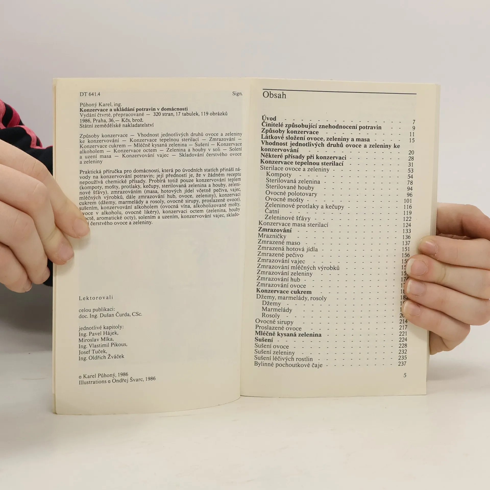 Praktická příručka pro domáctnost, která po úvodních statích přináší návody na konzervování potravin; její předností je, že v žádném receptu nepoužívá chemické přísady. Probírá totiž pouze konzervování teplem (kompoty, mošty, protlaky, kečupy, sterilovoná zelenina a houby, zeleninové štávy, zmrazováním (masa, hotových jídel včetně pečiva, vajec, mléčních výrobků, hub, ovoce,zeleniny), konzervaci cukrem (džemy, marmelády, rosoly, ovocné sirupy, proslazené ovoce), sušení, konzervování alkoholem (ovocná vína, alkoholizované mošty, ovoce v alkoholu, ovocné likéry), konzervaci octem (zelenina, houby v octě, aromatické octy), solením a uzením, konzervování vajec, skladování čerstvého ovoce a zeleniny.