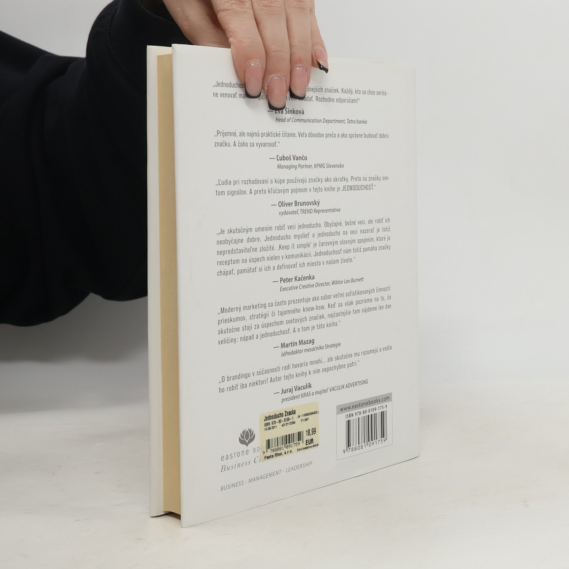 Je to jednoducho značka. Presne to by si mali povedať vaši zákazníci či klienti spoločnosti, ktorej budovať značku pomáhate. V dnešnom svete biznisu, v ktorom vládne tvrdý konkurenčný boj a zložité marketingové stratégie, je však presadenie značky na preplnenom trhu oveľa náročnejšie ako kedykoľvek predtým. Je teda možné vytvoriť aj v dnešných podmienkach značku so silnou identitou? Autor, uznávaný špecialista na branding, v tejto knihe ponúka jednoduché riešenie: postaviť značku na dobrom nápade, ktorý prešiel testovaním. Uistiť sa, že dizajn a posolstvo značky zodpovedá jej pravému významu a vyhnúť sa nepotrebným a komplikovaným stratégiám. Čerpá pritom z mnohoročných skúseností z práce s najvýznamnejšími svetovými značkami od GE po IBM. Ponúka aj pohľad do zákulisia na prácu s tradičnými značkami ako je Maxwell House, ale aj s nováčikmi ako JetBlue či iPod. Vysvetľuje, čo robia správne a čo nesprávne. Zařazeno v kategoriích
