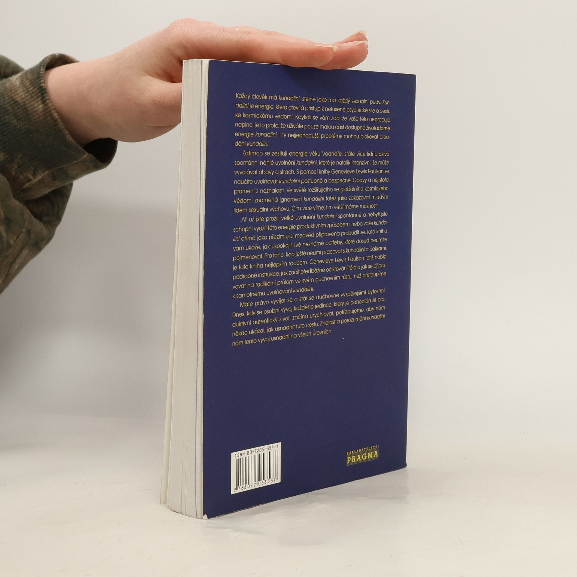 Kundalini je životodárná energie, která otevírá přístup k psychické síle a kosmickému vědomí. Kniha vás naučí, jak tuto energii uvolňovat postupně a bezpečně, a jak pracovat s dosud nepojmenovatelnými potřebami. Každý má kundalini, stejně jako sexuální pudy. Pokud cítíte, že vaše tělo nefunguje naplno, je to často kvůli nedostatečnému využívání této energie. I drobné problémy mohou blokovat její tok. V době zesilujících energií věku Vodnáře prožívá stále více lidí spontánní uvolnění kundalini, které může vyvolávat obavy. S pomocí této knihy se naučíte, jak uvolnit kundalini bezpečně a efektivně. Neznalost vyvolává strach, a ignorování kundalini je jako zakazování sexuální výchovy mladým lidem. Čím více víme, tím více možností máme. Ať už jste zažili intenzivní uvolnění kundalini nebo vaše energie dřímá, tato kniha vám ukáže, jak uspokojit neznámé potřeby. Je ideálním průvodcem pro ty, kdo chtějí pracovat s kundalini a čakrami. Autorka poskytuje podrobné instrukce pro očistu těla a přípravu na duchovní růst před samotným uvolněním kundalini. Máte právo na duchovní vývoj, a v dnešní době, kdy se osobní růst urychluje, je důležité mít někoho, kdo vám tuto cestu usnadní. Znalost kundalini vám pomůže na všech úrovních.
