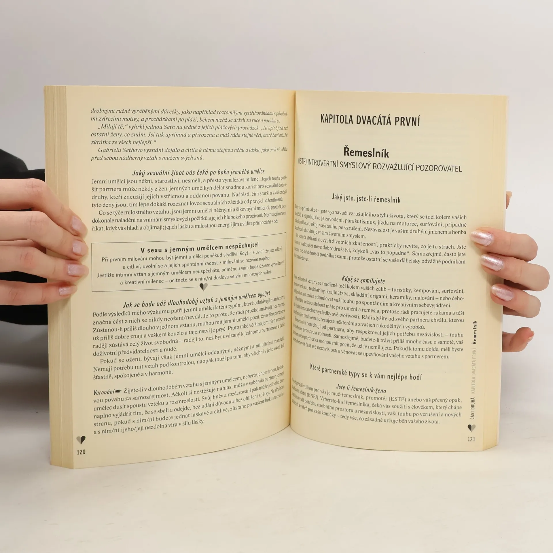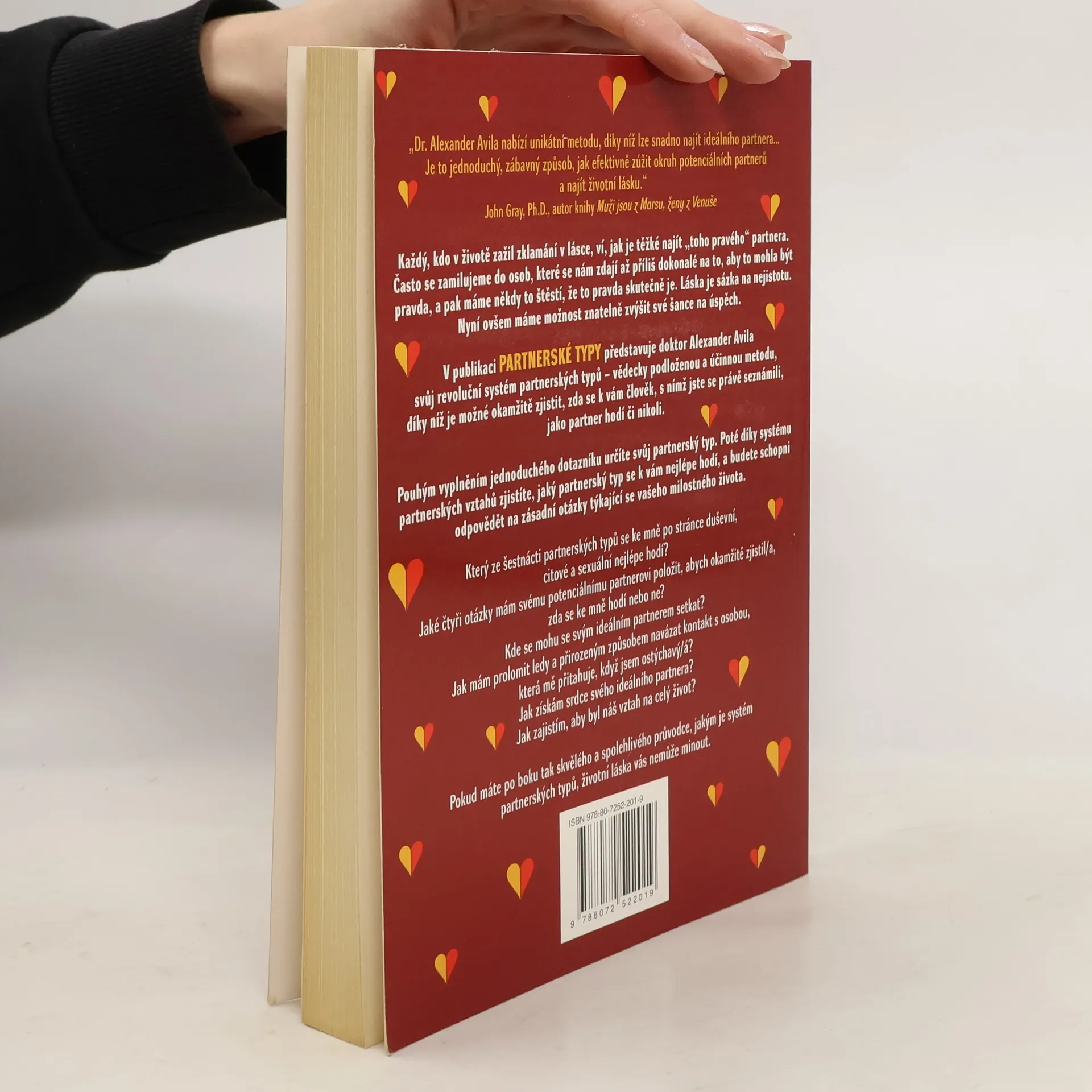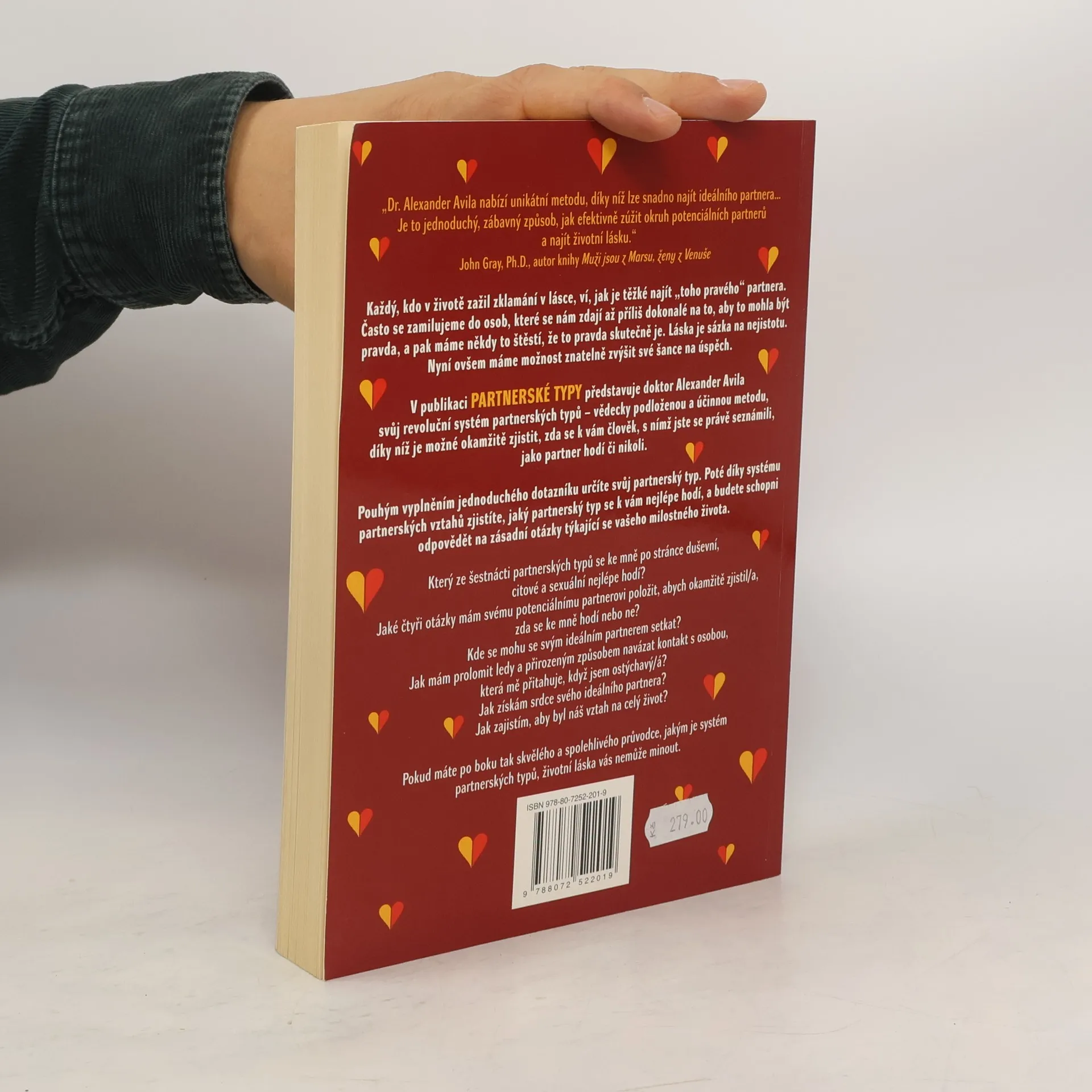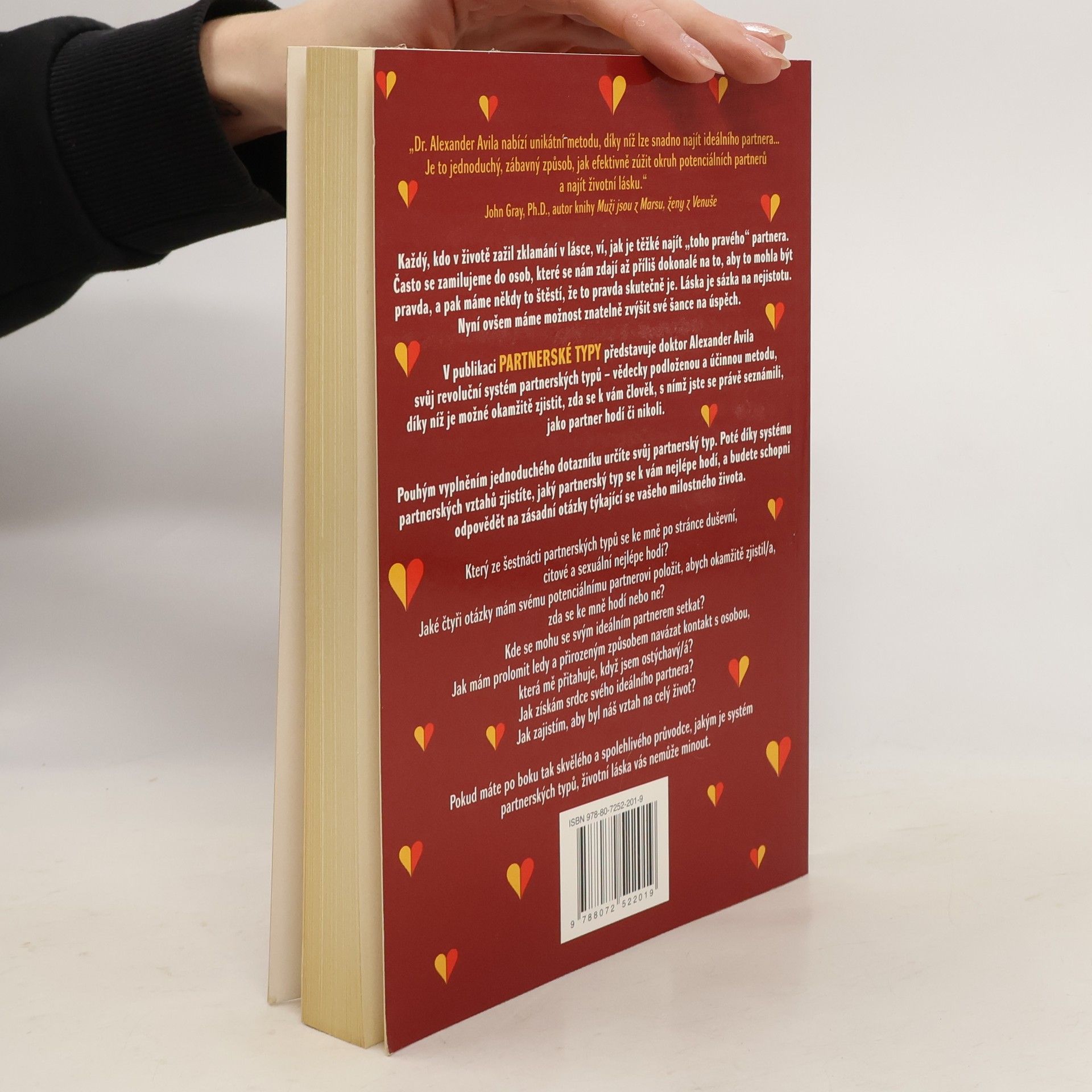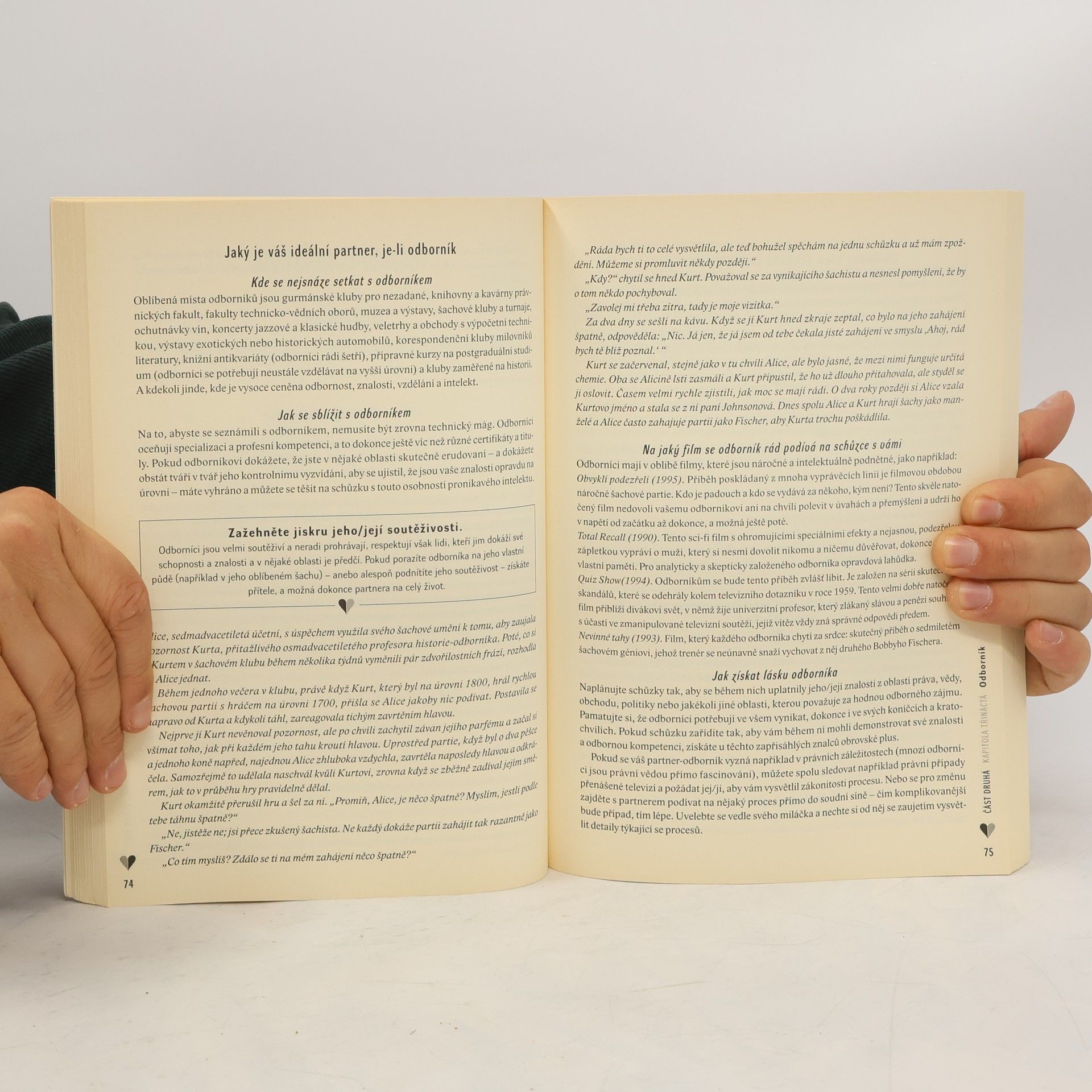 Podtitul: "Metoda založená na nejpopulárnějším osobnostním testu současnosti" Pestrá a praktická kniha plná návodů a jednoduchých partnerských testů. Dostáváte do ruky vědecky podloženou a účinnou metodu, díky níž je možné okamžitě zjistit, zda se k vám člověk, s nímž jste se právě seznámili, jako partner hodí či nikoli. Kde se mohu se svým ideálním partnerem/partnerkou setkat? Jak mám prolomit ledy a přirozeným způsobem navázat kontakt s osobou, která mě přitahuje, když jsem ostýchavý/á?Jak získám srdce svého ideálního partnera?