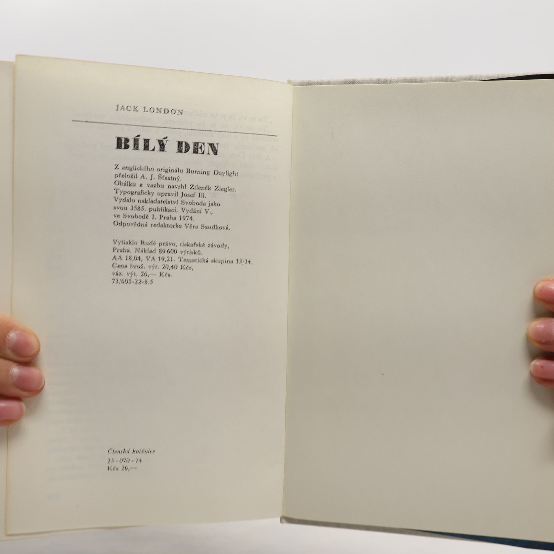 Bílý den, Jack London, Alois Josef Šťastný