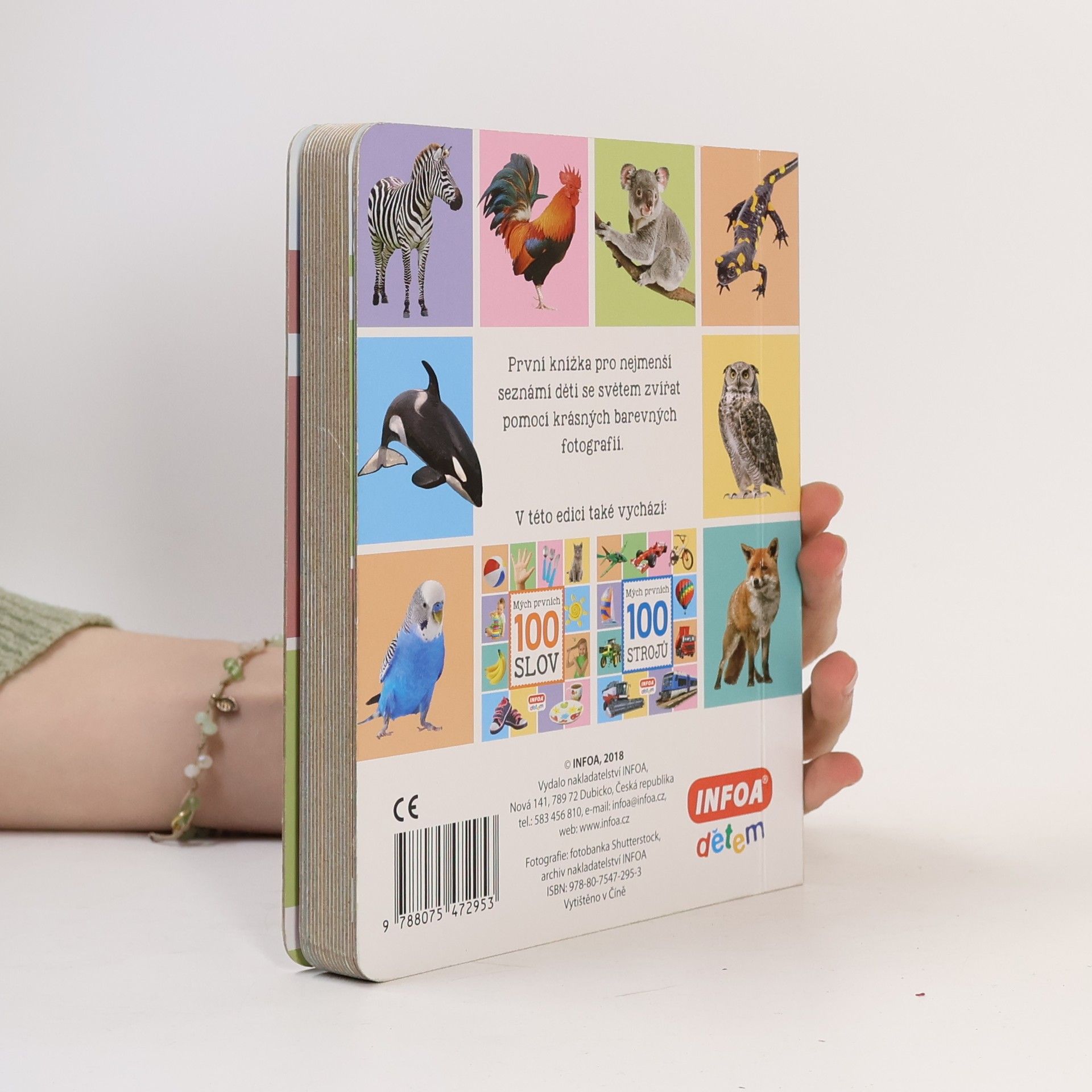 Kniha obsahuje 100 zvířat. Děti se naučí rozlišovat zvířata na domácí mazlíčky, na statku, na dvorku, na zahradě, na louce, na poli, v oblacích, v lese, u vody, v rybníku a řece, v horách, v savaně, v pralese, v krajinách ledu, v moři.