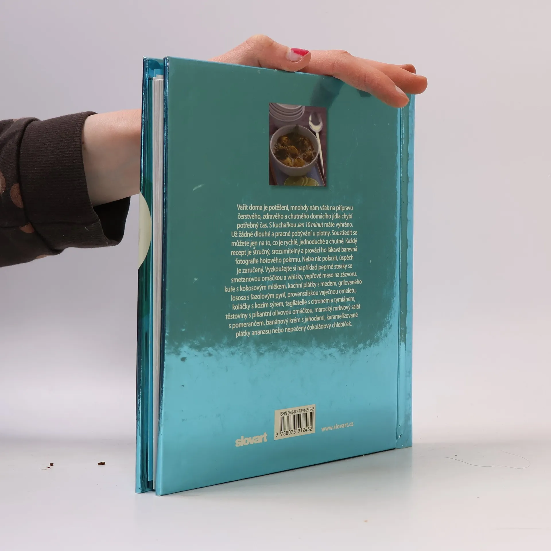Vařit doma je potěšení, mnohdy však na přípravu čerstvého, zdravého a chutného domácího jídla jistě chybí potřebný čas. S kuchařkou Jen 10 minut máte vyhráno. Už žádné dlouhé a pracné pobývání u plotny. Každý recept je stručný, srozumitelný a provází ho lákavá barevná fotografie hotového pokrmu. Nelze nic pokazit, úspěch je zaručený. Vyzkoušejte například peprné steaky se smetanovou omáčkou a whisky, vepřové maso na zázvoru, kuře s kokosovým mlékem, kachní plátky s medem, grilovaného lososa s fazolovým pyré, provensálskou vaječnou omeletu, koláčky s kozím sýrem, těstoviny s pikantní olivovou omáčkou, banánový krém s jahodami, karamelizované plátky ananasu nebo nepečený čokoládový chlebíček.