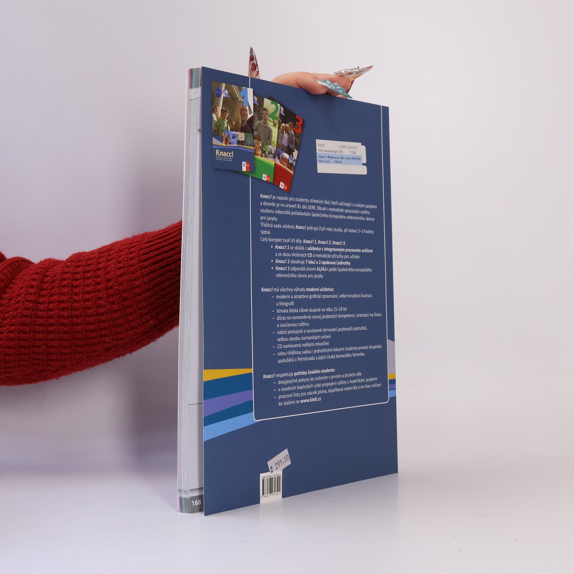 Obsah i metodické zpracování celého souboru odpovídá požadavkům Společného referenčního rámce pro jazyky. Celý komplet tvoří tři díly: Klacc! 1, Klacc! 2, Klacc 3! každý díl obsahuje 7 lekcí a 2 opakovací jednotky Klacc! 1 - 3 odpovídá úrovním A1, A2, B1 celou třídílnou sadou provazí studenty skupinka spolužáků z Petrohradu a jejich česká kamarádka Veronika Klacc! má všechny výhody moderní učebnice: Moderní a atraktivní grafické zpracování, velké množství ilustrací a fotografií témata blízká mladým lidem nabízípostupné a soustavné shrnování jazykových poznatků, velkou zásobu rozmanitých cvičení klade důraz na rovnoměrný rozvoj jazykových kompetencí, orientaci na živou ruštinu