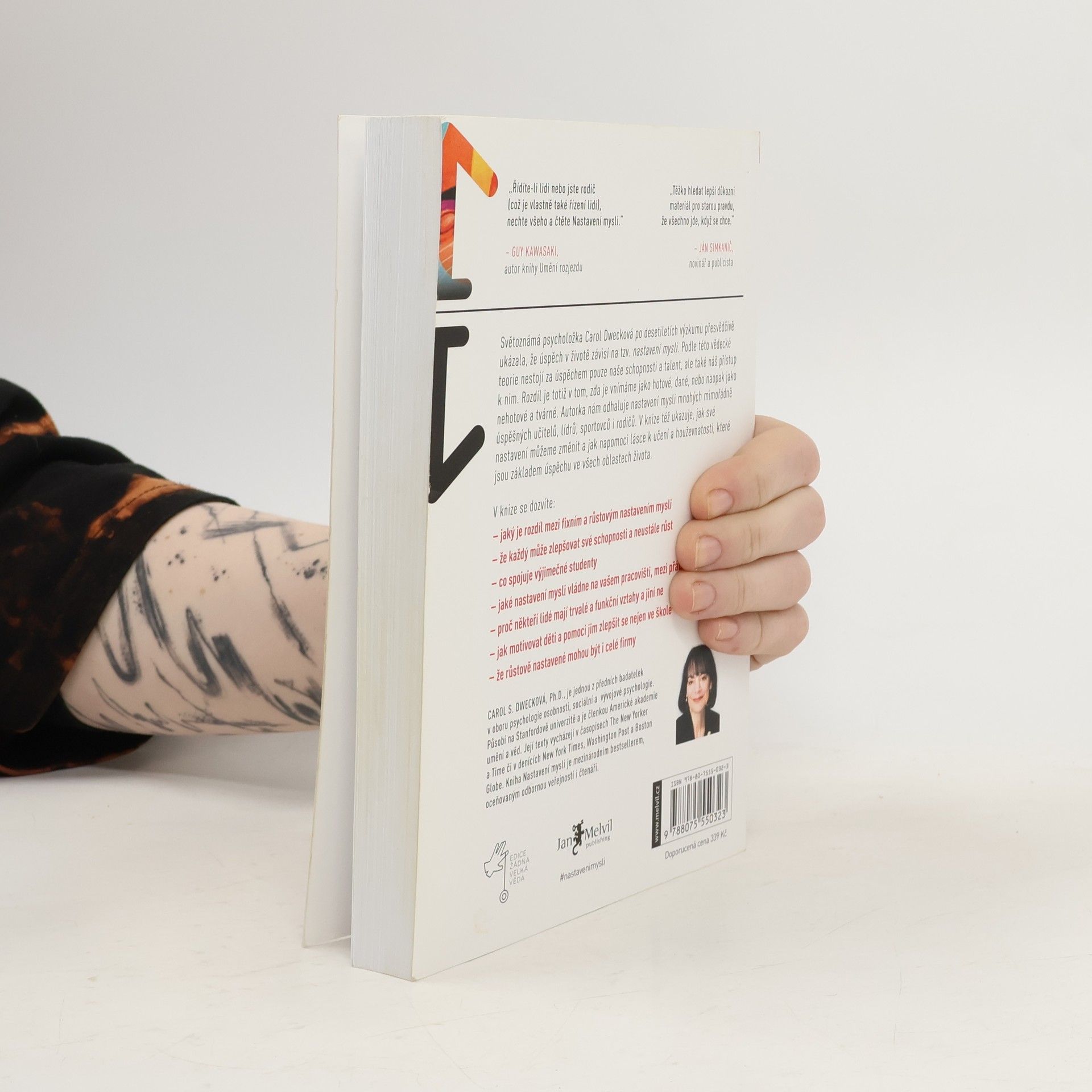 Jednoduchá myšlenka, kolem níž se tato kniha točí, a za níž stojí desítky let vědeckého výzkumu, se dá vyjádřit zhruba takto: úspěch máme ve svých hlavách. Profesorka Dwecková se svým týmem na Standfordské univerzitě zjistila, že svou přirozeností tíhneme ke dvěma relativně vyhraněným způsobům myšlení o sobě a své úspěšnosti: k myšlení růstovému a myšlení fixnímu (angl. „growth mindset“ a „fixed mindset“). To, které myšlení u nás převládá, pak významně ovlivňuje naši reálnou úspěšnost. Ke zjištěním Dweckové popsaným v knize patří nadějný závěr, že se navzdory své dispozici dokážeme během života změnit, a autorka ukazuje, jak na to: jak využít svůj plný potenciál. Chcete vědět, jak přesně se dva zmíněné typy myšlení projevují? Typickým rysem fixního myšlení je vzdávání se před překážkou, neschopnost přijímat zpětnou vazbu, špatný pocit při vnímání úspěchu ostatních, vyhýbání se výzvám a negativní postoj k úsilí jako takovému. Naopak růstové myšlení se projevuje vřelým vztahem k výzvám, vytrvalostí při čelení překážkám, pozitivním vztahem ke kritice. Růstově myslící člověk vnímá úsilí jako cestu k mistrovství a v úspěchu druhých vidí inspiraci.