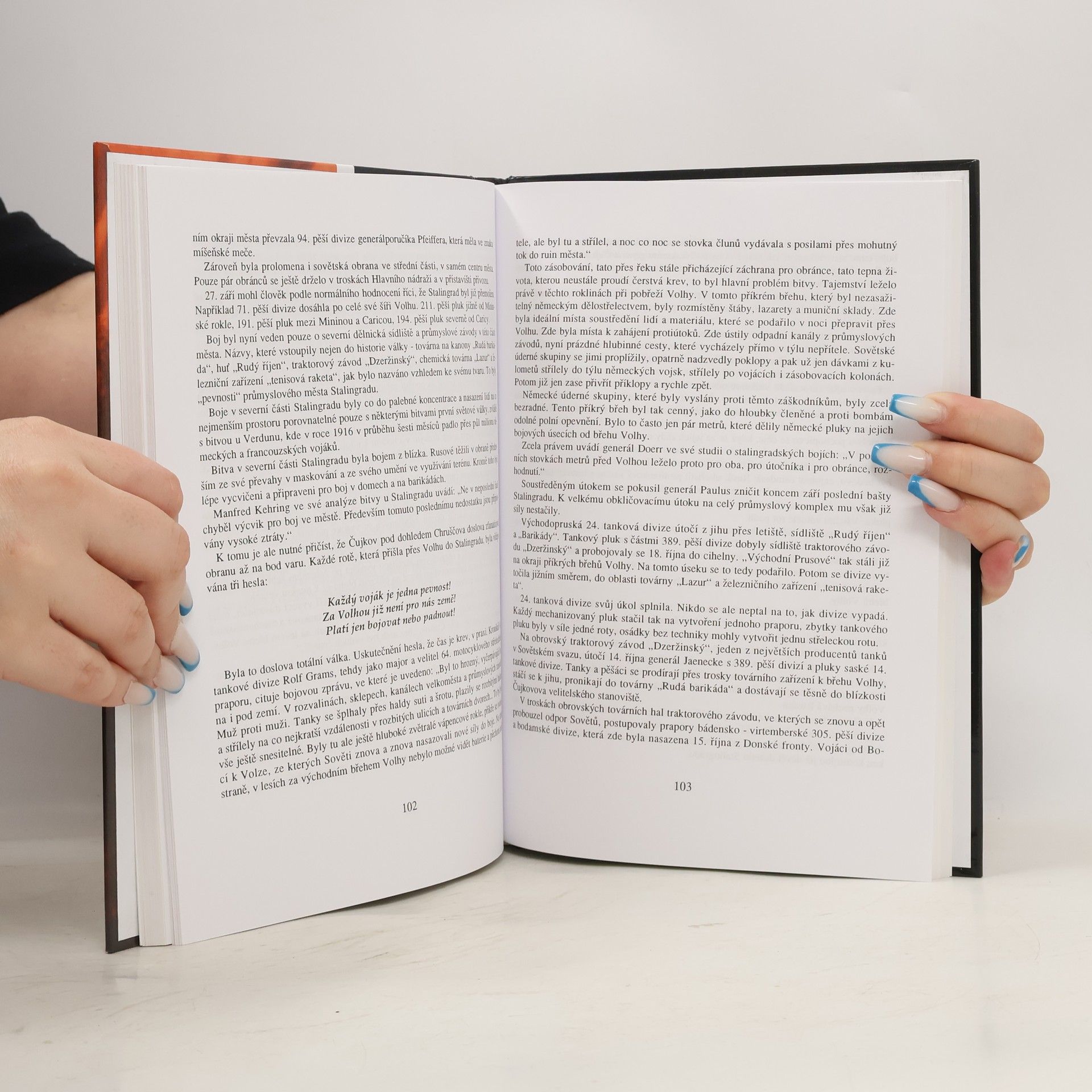 Ještě nikdo nevylíčil drama bitvy u Stalingradu tak působivě, jako Paul Carell, velký kronikář ruského polního tažení. V této studii se mu podařilo prezentovat nejnovější historické výzkumy v poutavém vylíčení. Carel objevil v dosud neznámých ruských pramenech nové poznatky a rozpracoval dosud opomíjené aspekty bojů u Stalingradu. Tak například ukázal hospodářské motivy a dimenze, které byly zatím velice málo zohledňovány. Ukázal, že porážkou u Stalingradu ještě v žádném případě nebyla válka rozhodnuta...