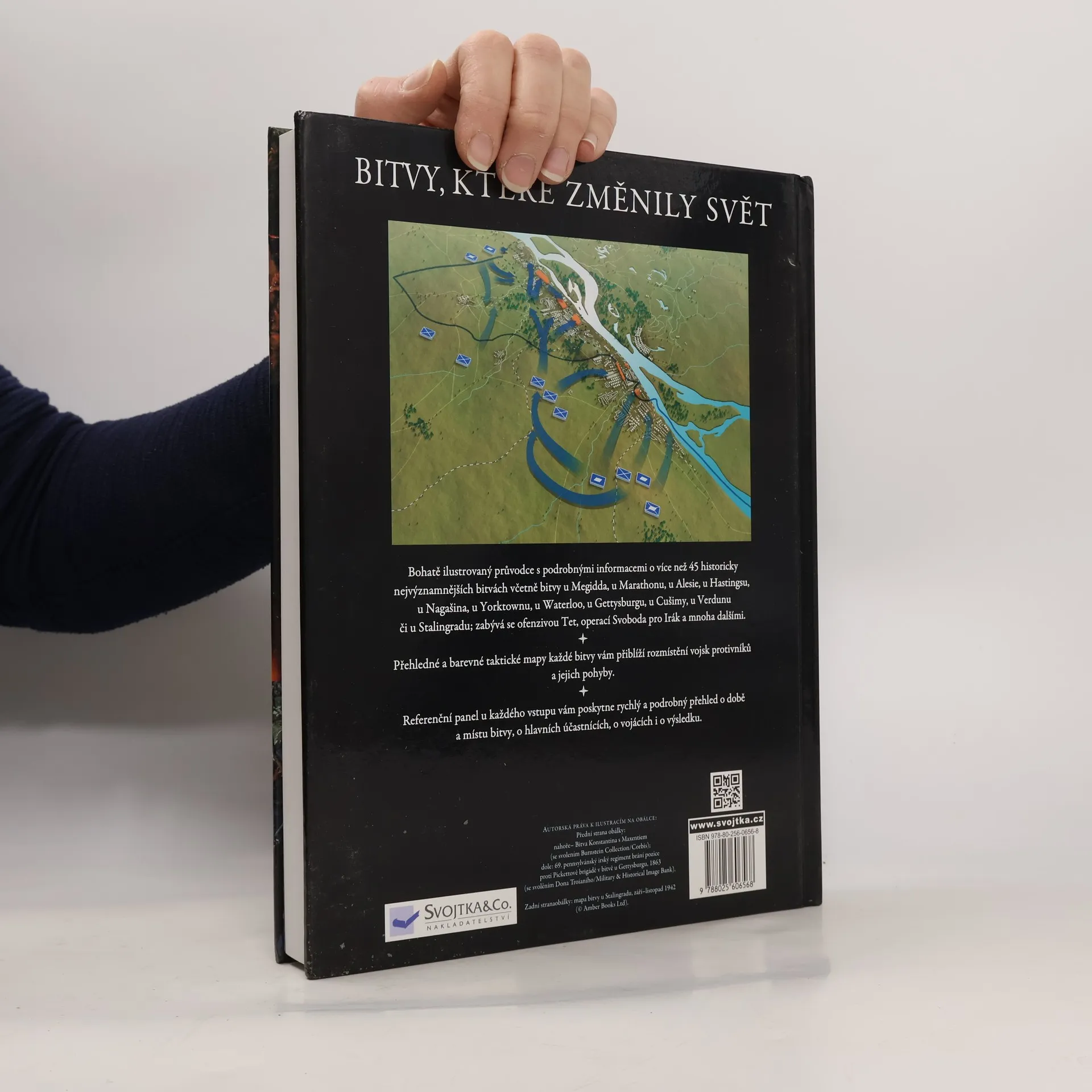 V historii došlo k mnoha důležitým bitvám, které formovaly dějiny. Tato kniha přináší výběr zásadních střetnutí, oživený zážitky účastníků a zkoumá dopady těchto bitev na další události. Zaznamenává 47 rozhodujících střetnutí od první bitvy u Meggida v roce 1457 př. n. l. až po americkou invazi do Iráku v roce 2003. Bitvy se odehrávaly po celé Evropě, na Blízkém východě, v Asii i Americe, v různých prostředích od japonských vod po palestinské hory a velká města. Tyto bitvy měly zásadní vliv na politické, vojenské, ekonomické, společenské a kulturní vztahy. Působily rozhodujícím způsobem ve čtyřech směrech: ukončily velké konflikty, znamenaly obrat v rozsáhlých válkách, přinesly nové technologie a taktiky do válečnictví a hluboce ovlivnily moderní veřejné povědomí. Kniha, založená na odborných poznatcích, nabízí ucelený pohled na důležité vrcholné bitvy, které měnily běh historie.