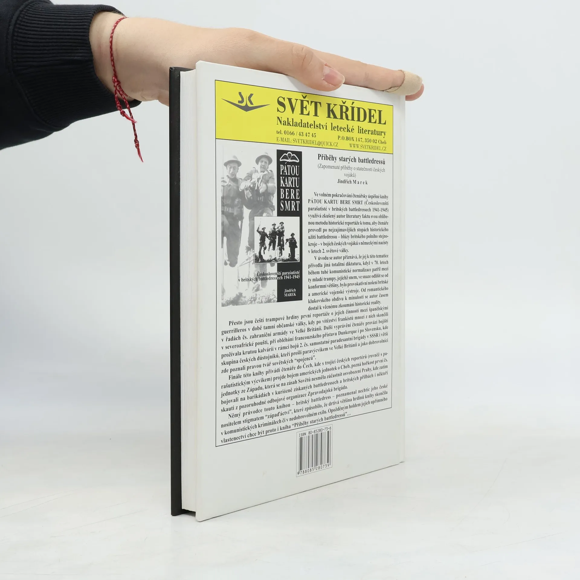 Ve volném pokračování čtenářsky úspěšné knihy historika a publicisty Jindřicha Marka PÁTOU KARTU BERE SMRT využívá zkušený autor literatury faktu svou oblíbenou metodu historické reportáže k tomu, aby čtenáře provedl po nejzajímavějších stopách historického užití battledressu - blůzy britského polního stejnokroje - v bojích českých vojáků s německými nacisty v letech 2. světové války. Němý průvodce touto knihou - britský battledress - poznamenal nechtíc jeho české nositelem stigmatem “zápaďáctví”, které způsobilo, že drtivá většina hrdinů knihy skončila v komunistických kriminálech či v nedobrovolném exilu. Opožděným holdem jejich upřímného vlastenectví chce být proto i kniha “Příběhy starých battledressů”…