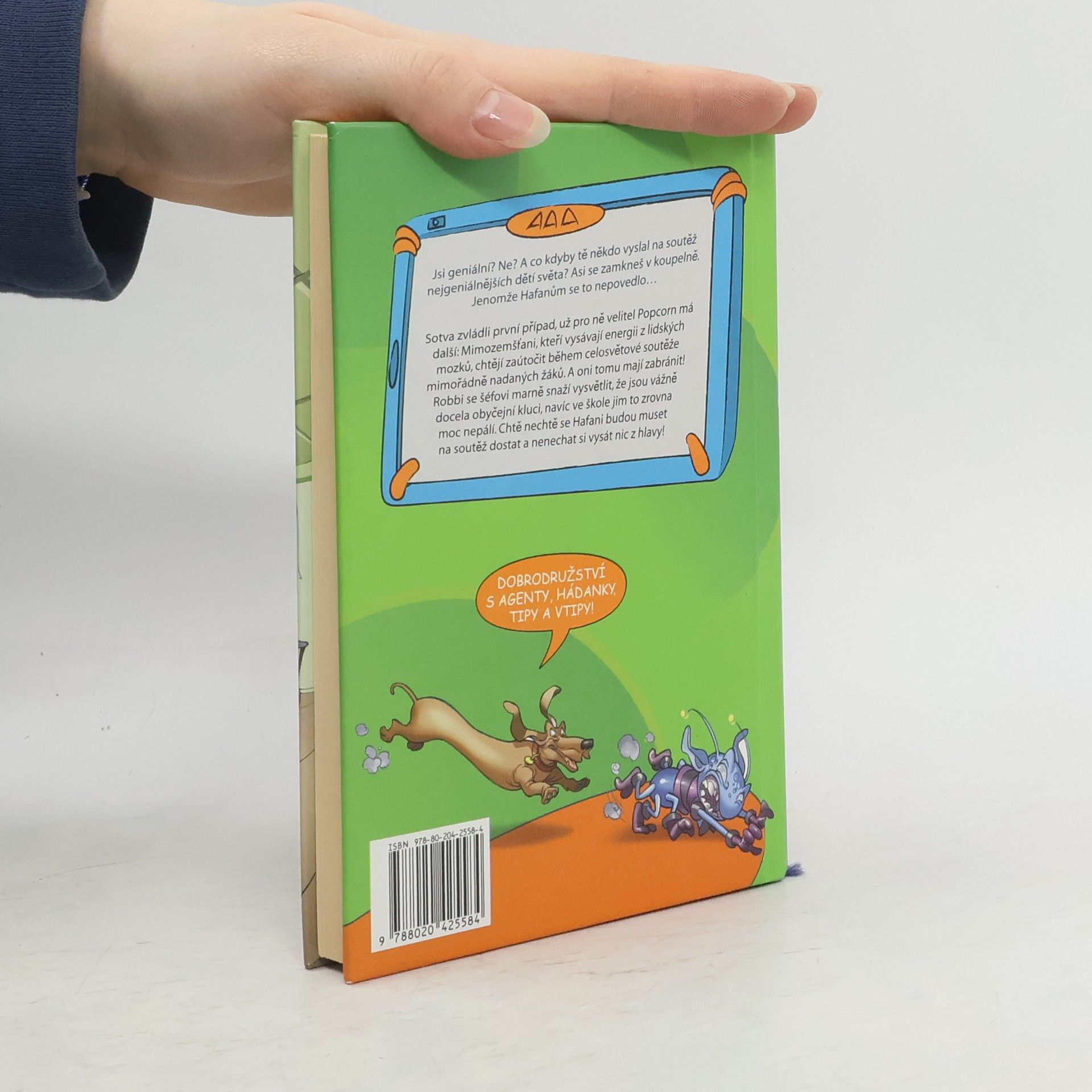 Mimozemšťané opět útočí! Sotva parta novopečených agentů úspěšně zvládla svůj první případ, má pro ně velitel Popcorn další úkol: Mimozemšťané, kteří vysávají energii z lidských mozků, plánují zaútočit během celosvětové soutěže mimořádně nadaných žáků. Robbi se šéfovi Agentury pro potírání mimozemšťanů marně snaží vysvětlit, že jsou opravdu jenom docela obyčejní kluci, kterým to navíc — kromě Konráda — ve škole nijak zvlášť nejde. Jak by se tedy měli dostat na soutěž supermozků? Ukáže se ale, že vždycky existuje nějaká cesta, a naši hrdinové bez bázně a hany se znovu vydávají do boje...