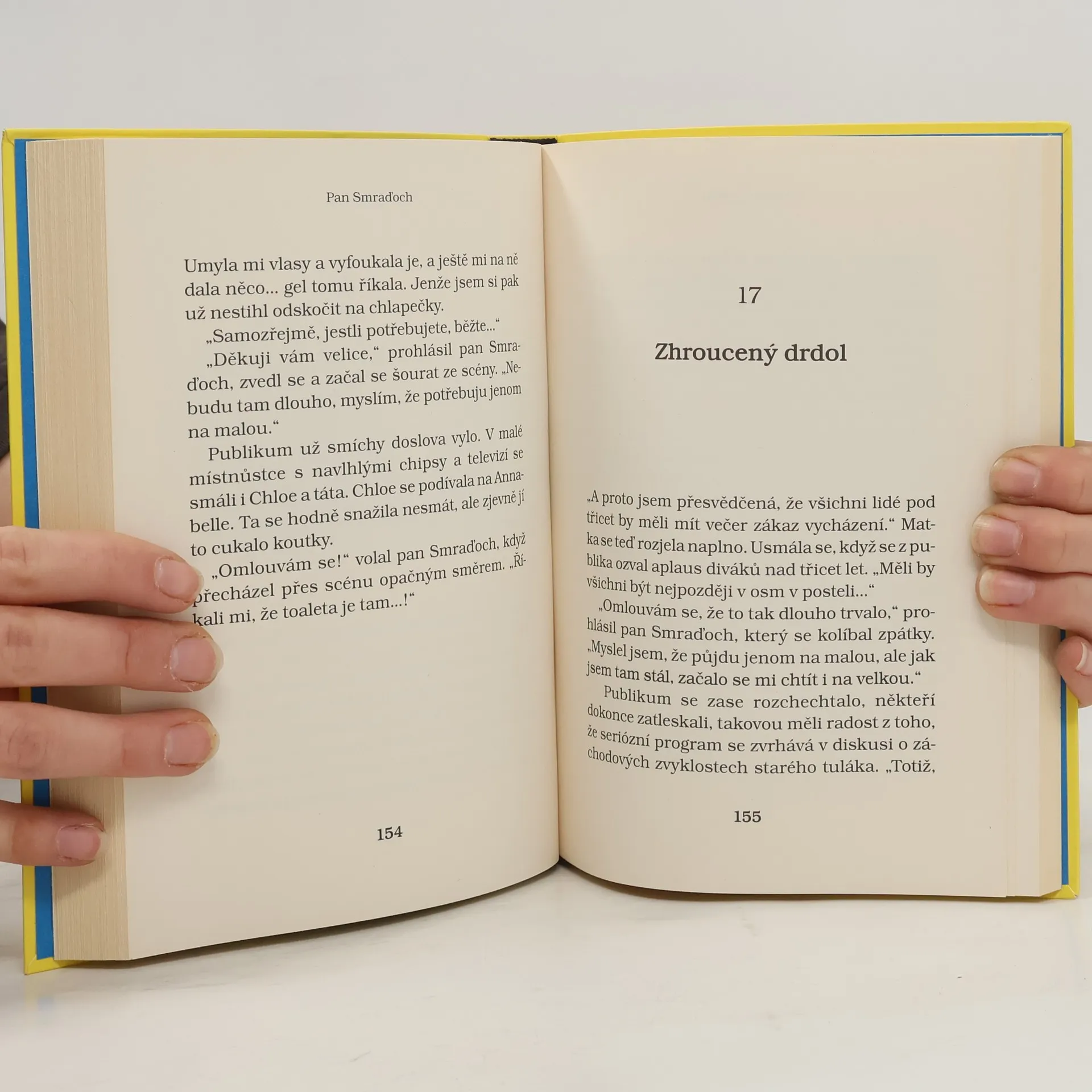 Další humorný příběh pro mladé čtenáře od autora knihy Babička drsňačka. Kouzelně neuctivý a zároveň dojemný příběh vypráví o tajemstvích, přátelství i docela obyčejném životě. Pan Smraďoch patří do kategorie hodně divných románových hrdinů. Žije na lavičce v parku a svému jménu dělá opravdu čest. Je to ten nejsmradlavější smraďoch pod sluncem. Dvanáctileté Chloe to ale rozhodně nebrání v tom, aby se s ním spřátelila. Jasně, páchne, ale na druhou stranu nikdy na ni nikdo nebyl tak milý jako on. A tak se Chloe rozhodne, že milého bezdomovce tajně ubytuje v kůlně na zahradě svých rodičů. Jenže schovejte takového smraďocha! Chloe brzy pozná, že některá tajemství můžou být velmi nebezpečná a od katastrofy je dělí jen malinký krůček.