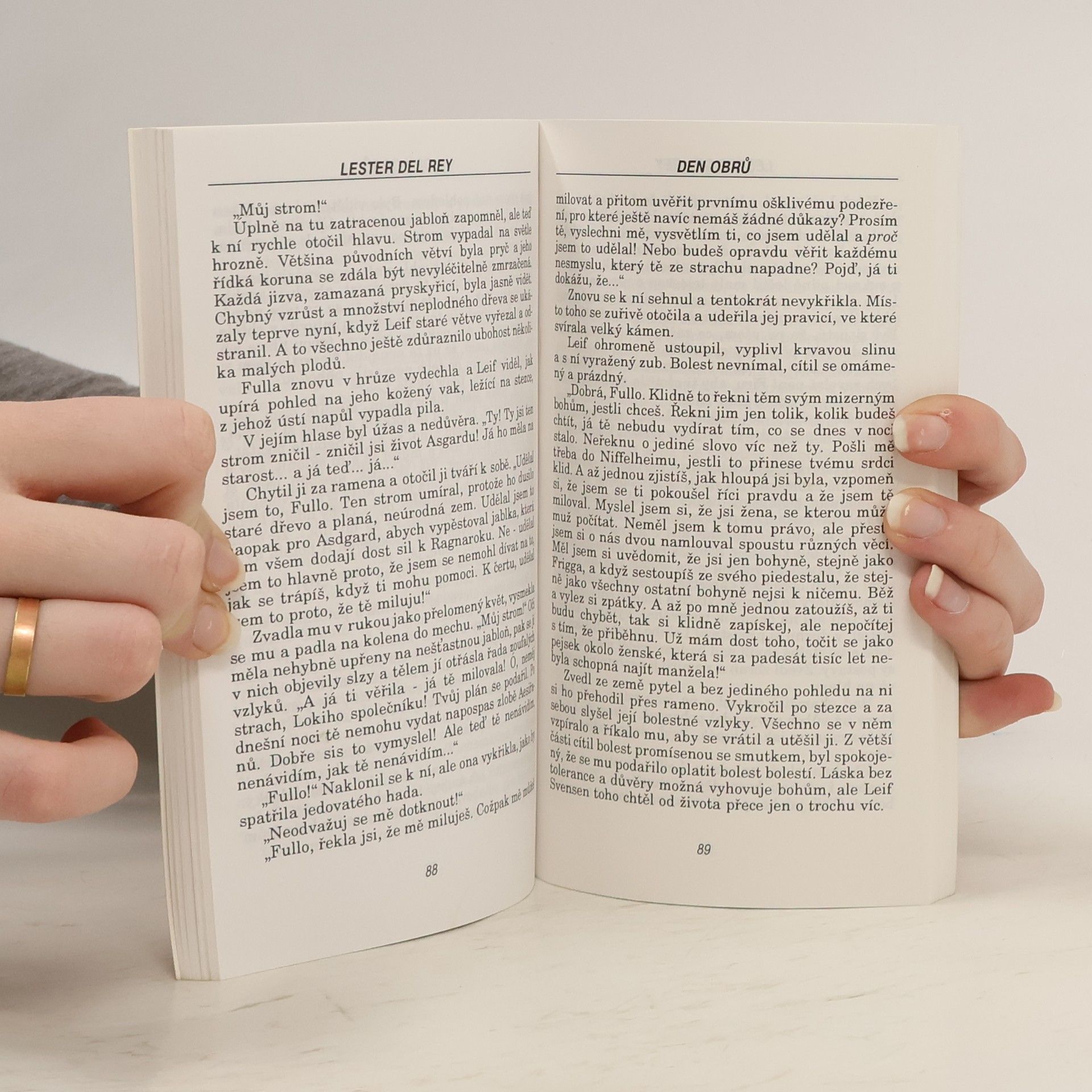 Den obrů pojednává o Ragnaroku – poslední bitvě mezi severskými bohy a ledovými obry. Hrdinové říše Asgardu slábnou. Bůh Odin si uvědomuje, že bez nové krve nemají bohové šanci zvítězit v posledním střetnutí se silami zla a souhlasí s tím, aby v rozhodujícím boji vedl vojska Asgardu nový válečník. Leif Svensen je farmář a jeho bratr-dvojče Lee je protřelý voják, který prošel několika bojišti světa, včetně korejského. Háček je v tom, že zatímco většina bohů, včetně Thora, sází na Leeho, bůh zlomyslnosti a klamu, Loki, si vybral jako svého oblíbence právě Leifa. Valkýry se vydají na Zem, aby „hrdinu“ dopravily do Asgardu. Jejich koně však mohou přes duhový most přenést jen člověka, který umírá se zbraní v ruce… Jak sem Leifa dopravit? Začíná Fimbulwinter, zima, která předznamenává Ragnarok… Lester Del Rey na vrcholu své dokonalosti!