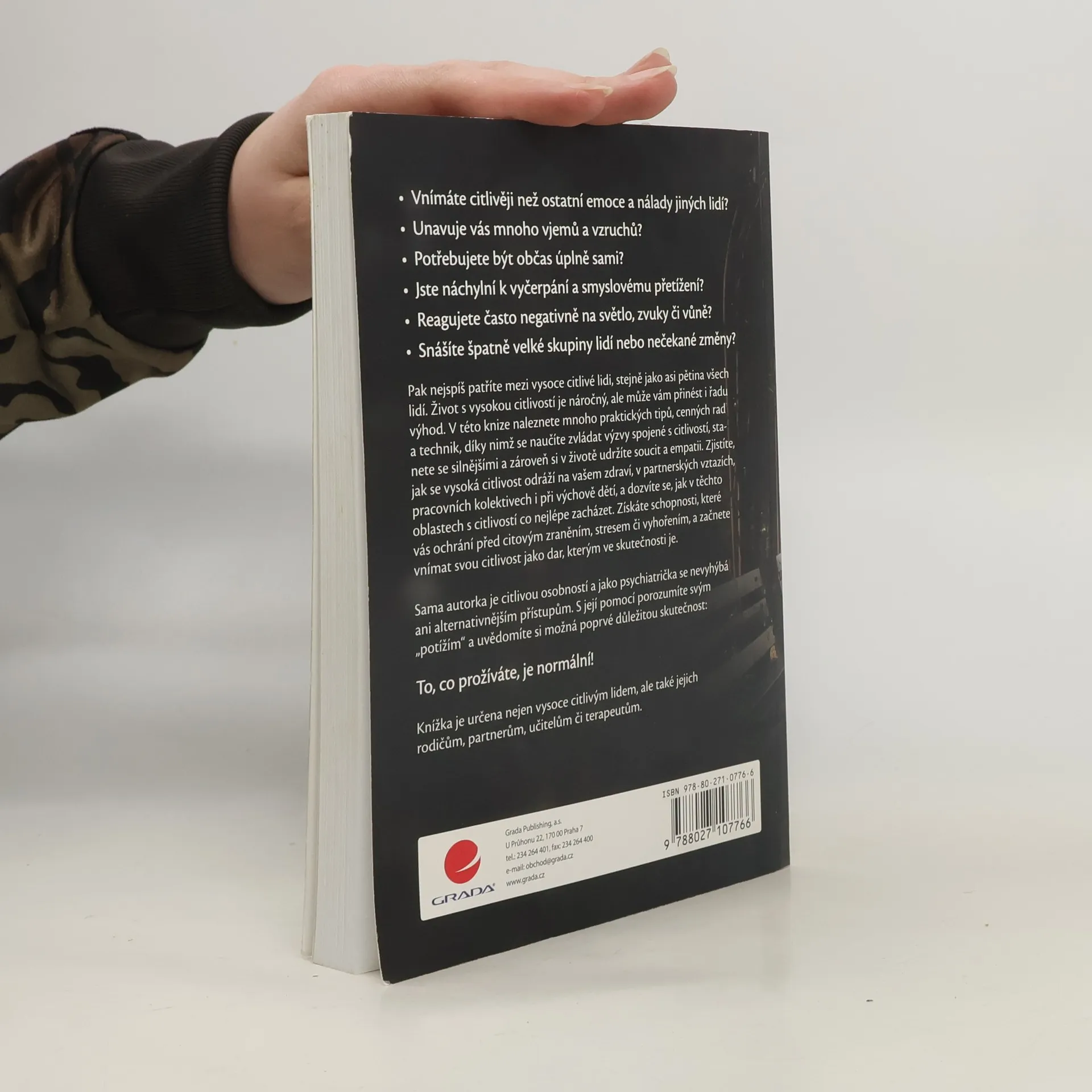 Vnímáte citlivěji než ostatní emoce a nálady jiných lidí? Unavuje vás mnoho vjemů a vzruchů? Potřebujete být občas úplně sami? Jste náchylní k vyčerpání a smyslovému přetížení? Reagujete často negativně na světlo, zvuky či vůně? Snášíte špatně velké skupiny lidí nebo nečekané změny? Pak nejspíš patříte mezi vysoce citlivé lidi, stejně jako asi pětina všech lidí. Život s vysokou citlivostí je náročný, ale může vám přinést i řadu výhod. V této knize naleznete mnoho praktických tipů, cenných rad a technik, díky nimž se naučíte zvládat výzvy spojené s citlivostí, stanete se silnějšími a zároveň si v životě udržíte soucit a empatii. Zjistíte, jak se vysoká citlivost odráží na vašem zdraví, v partnerských vztazích, pracovních kolektivech i při výchově dětí, a dozvíte se, jak v těchto oblastech s citlivostí co nejlépe zacházet. Získáte schopnosti, které vás ochrání před citovým zraněním, stresem či vyhořením, a začnete vnímat svou citlivost jako dar, kterým ve skutečnosti je. Sama autorka je citlivou osobností a jako psychiatrička se nevyhýbá ani alternativnějším přístupům. S její pomocí porozumíte svým „potížím“ a uvědomíte si možná poprvé důležitou skutečnost: To, co prožíváte, je normální! Knížka je určena nejen vysoce citlivým lidem, ale také jejich rodičům, partnerům, učitelům či terapeutům.