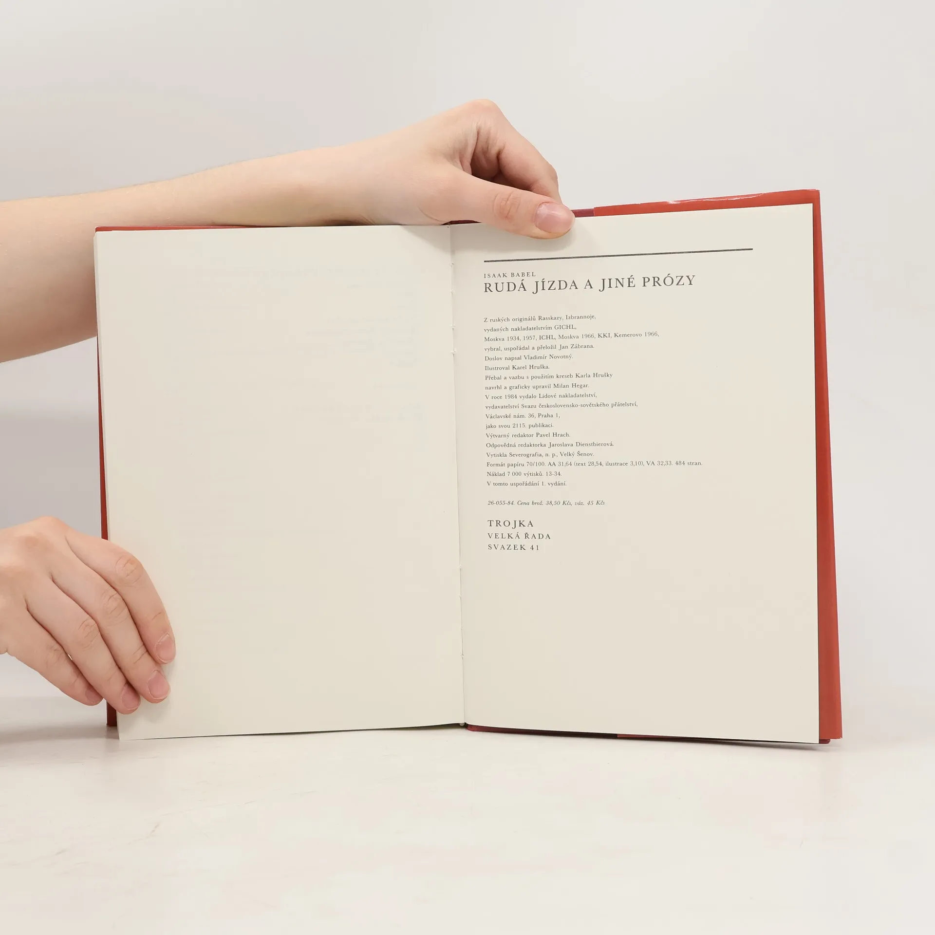 Obsah: Rudá jízda – Povídky do Rudé jízdy nezařazené – Oděské povídky – Historie mého holubníku – Ostatní povídky – Povídky na cizí námět – Rané povídky – Divadelní hry (Západ slunce, Marija) – Filmová povídka (Beňa Krik) – Črty, fejetony, vzpomínky. Vybral, uspořádal a přeložil Jan Zábrana. V tomto uspořádání vydání první.