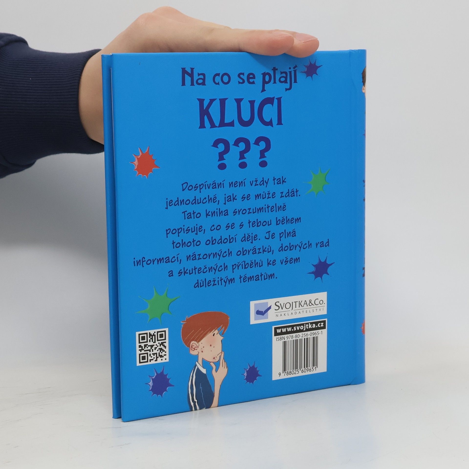 Dospívání není vždy tak jednoduché, jak by se mohlo zdát. Na co se ptají kluci? Tato kniha jednoduše a srozumitelně popisuje, co se s tebou během tohoto nelehkého období děje. Je plná informací, názorných obrázku, dobrých rad týkajících se všech důležitých témat i historek ze života. Můžeš ji přečíst od začátku do konce nebo si vybrat jen ty části, které tě právě zajímají. Leccos z toho ti muže připadat složité, něco dokonce trapné, něco naopak úsměvné, možná budeš mít z něčeho obavy. Ale až se vším "prokoušeš", budeš mít určitě dobrou představu o tom, co tě čeká a co se to s tebou vlastně děje. Kromě toho zde najdeš pár skvělých rad, díky nimž se dokážeš vyhnout mnoha trapným situacím.