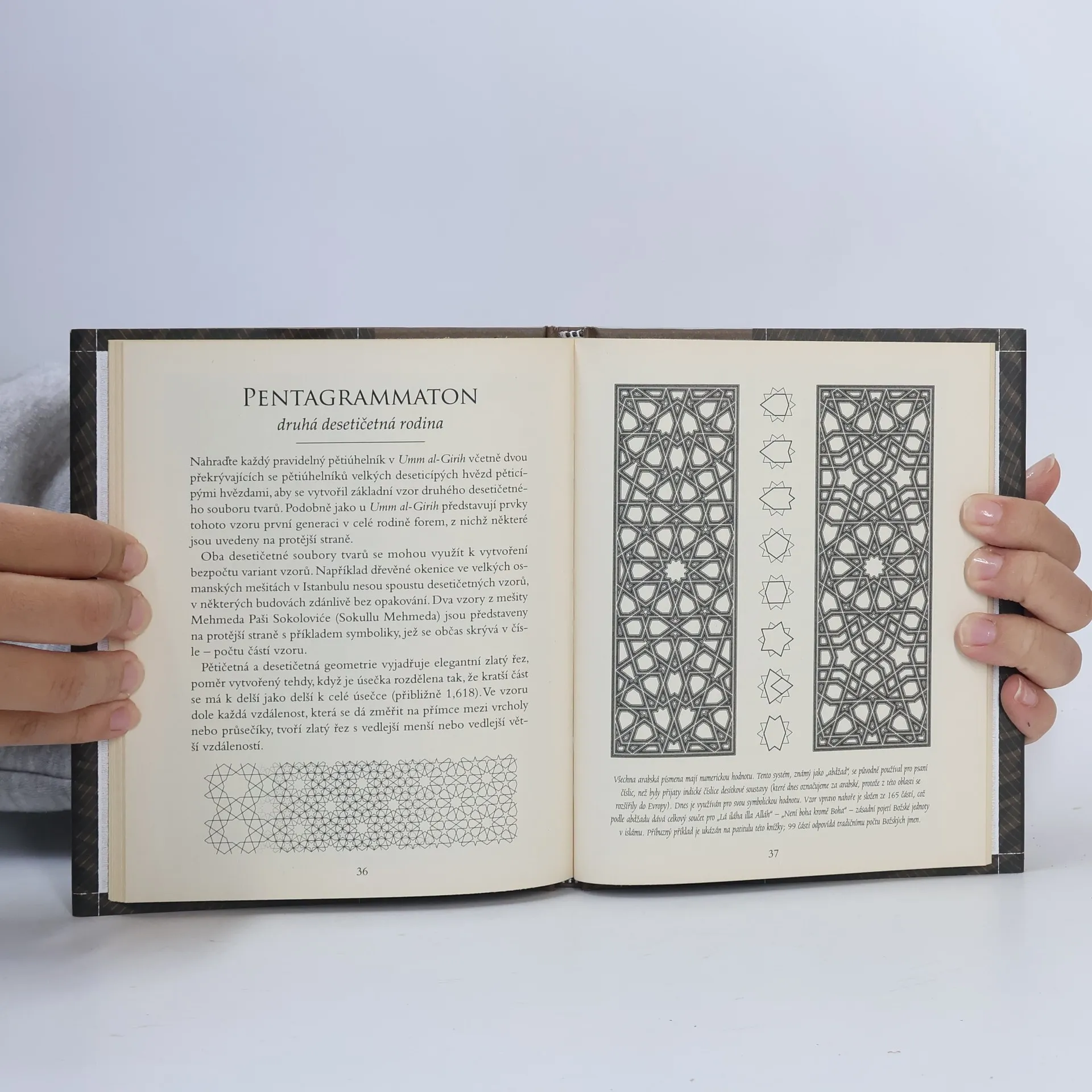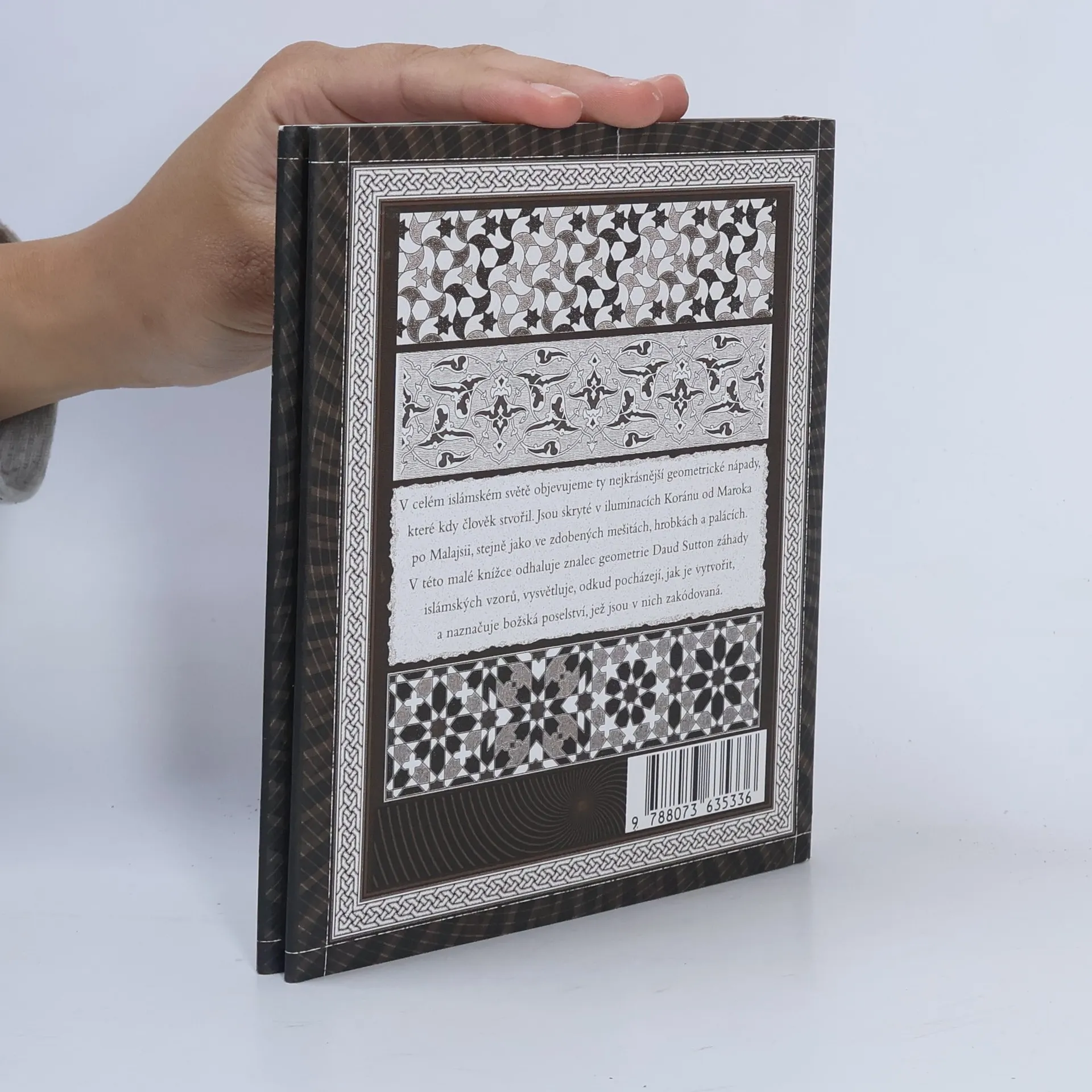 Islámský design zdobí korán, mešity, mauzolea i paláce a jsou v něm skryté ty nejnádhernější geometrické vzory, které kdy člověk vytvořil. Během dlouhé umělecké tradice islámského světa se uplatňoval v nejrůznějších prostředích, ale s jednotícími harmonickými faktory, díky kterým je okamžitě rozeznatelný. Ve struktuře islámského designu jsou dva klíčové aspekty: kaligrafie využívající arabské písmo a abstraktní zdobení. Odborník v oboru geometrie Daud Sutton nabízí ve své knize výjimečný vhled do islámské kultury, odhaluje tajemství islámských geometrických vzorů, vysvětluje, odkud pocházejí, jak vznikají, a přibližuje duchovní vzkazy, jež jsou v nich zakódované.