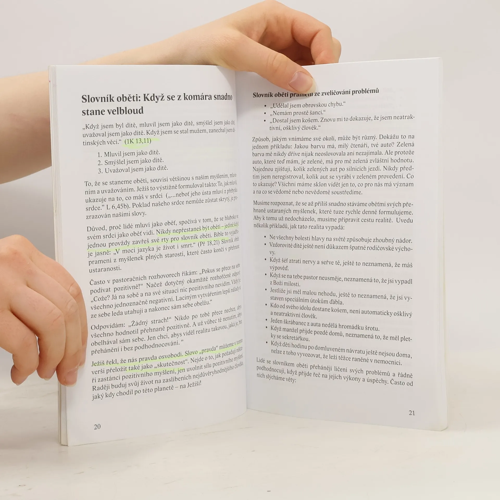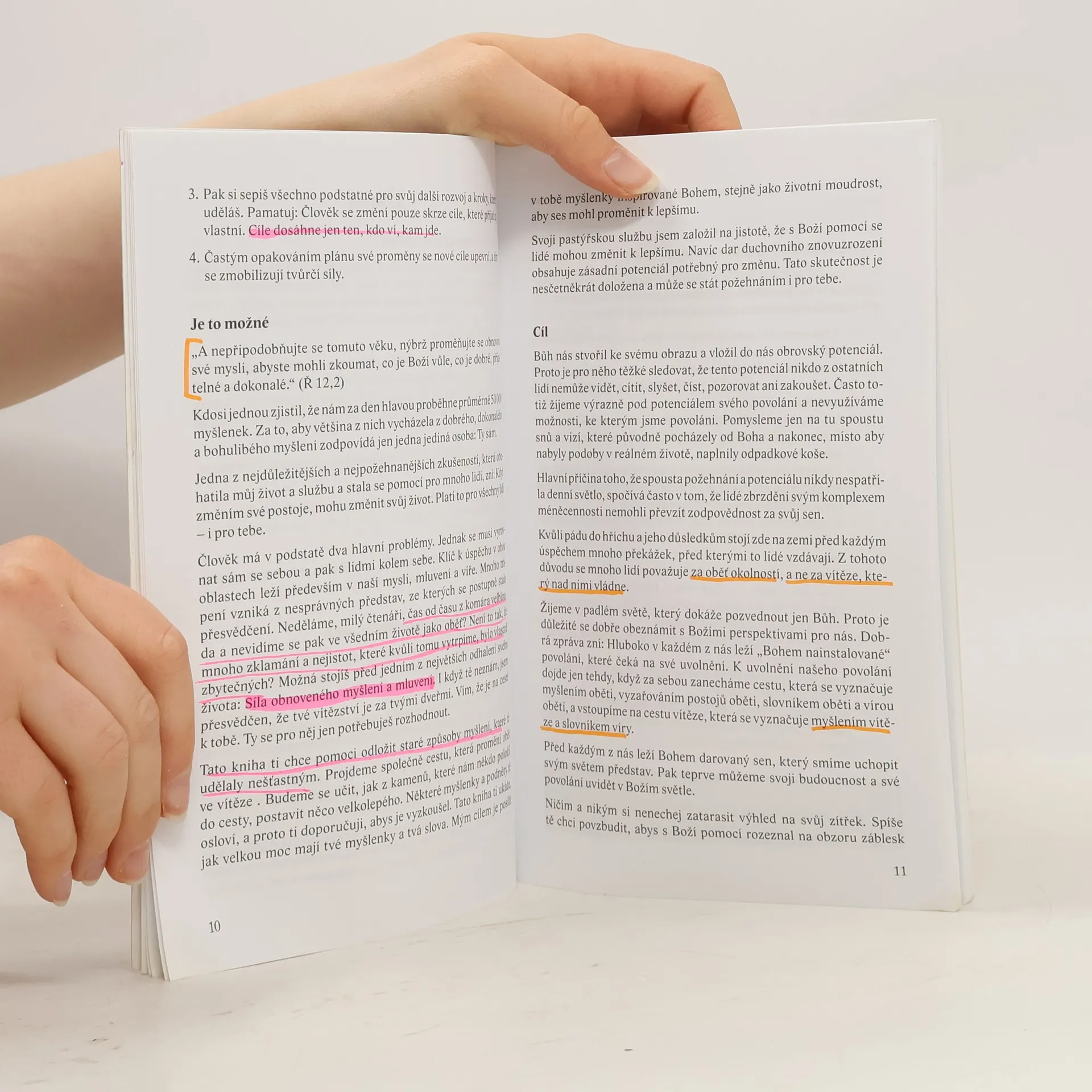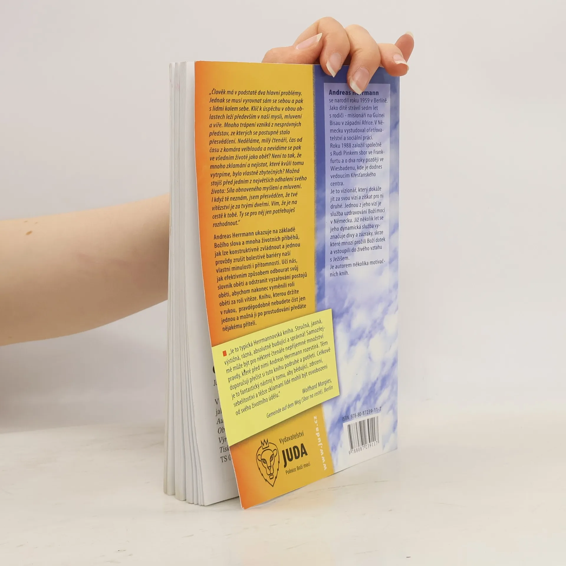 Člověk čelí dvěma hlavním problémům: vyrovnat se sám se sebou a s lidmi kolem sebe. Klíč k úspěchu leží v naší mysli, mluvení a víře. Mnoho trápení pramení z nesprávných představ, které se staly přesvědčením. Často si vytváříme zbytečné obavy a vidíme se jako oběti. Můžeš objevit sílu obnoveného myšlení a mluvení, které ti otevře cestu k vítězství. Andreas Herrmann, na základě Božího slova a životních příběhů, ukazuje, jak překonat bolestivé bariéry minulosti a přítomnosti. Učí, jak odbourat slovník oběti a vyměnit roli oběti za vítěze. Tato kniha je určena k opakovanému čtení a můžeš ji sdílet s přáteli. Recenzent Wolfhard Margies ji popisuje jako stručnou, jasnou a budující. Přiznává, že pravdy, které Herrmann odhaluje, mohou být pro některé čtenáře nepříjemné, a doporučuje knihu číst vícekrát. Celkově je to mocný nástroj pro osvobození těch, kteří se cítí zdrceni, sebelítostiví a zklamaní.