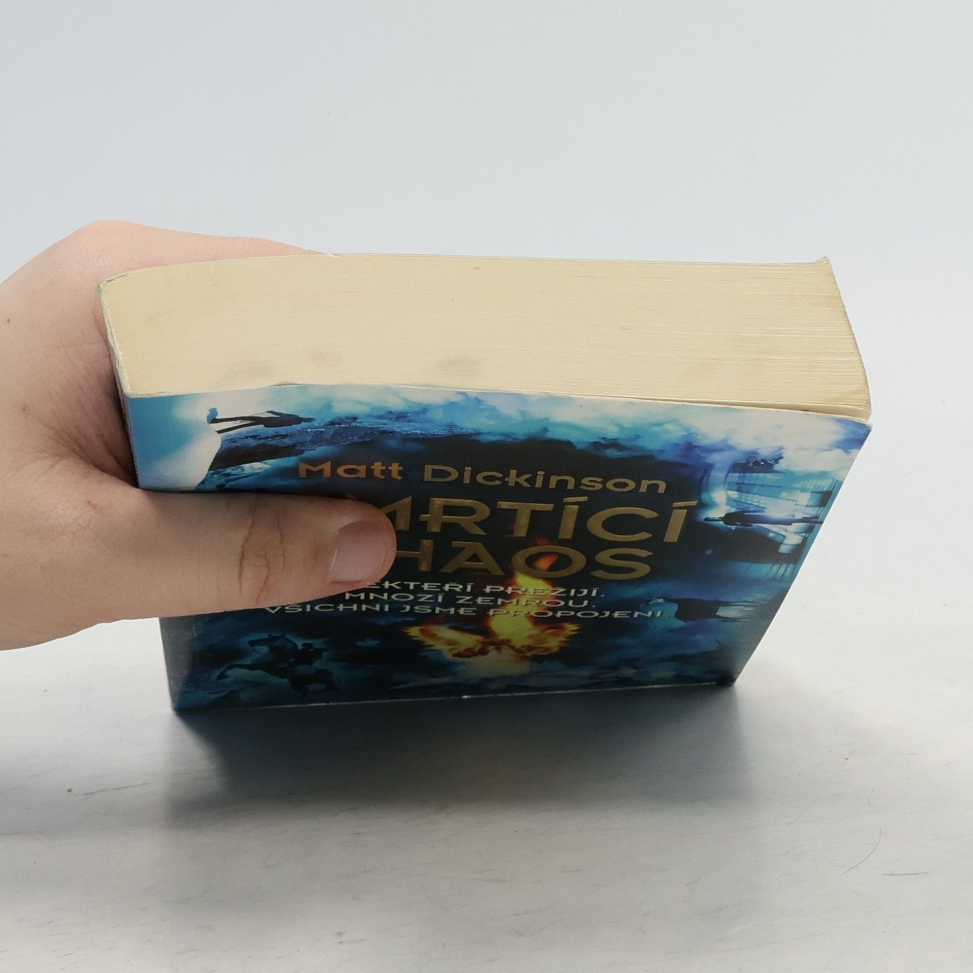 Zdánlivá drobnost – mávnutí motýlích křídel – uvede do chodu řetězec dramatických událostí a osudově ovlivní životy mnoha lidí. Matt Dickinson ve své mistrně napsané próze zavede čtenáře v krátkých „klipových“ vstupech do rozličných prostředí – třeba na severní stěnu Mount Everestu, na palubu Boeingu 747, k jezeru Malawi, na dostihovou dráhu – a nechá je se zatajeným dechem sledovat klíčové okamžiky v životě svých hrdinů. Román vycházející z teorie chaosu je určen všem, kdo milují napětí, ale nespokojí se jen s povrchní četbou. Klade řadu provokativních otázek a přináší překvapivé odpovědi. Někteří přežijí. Jiní zemřou. Všichni jsme propojeni. -- zdroj: www.legie.info --