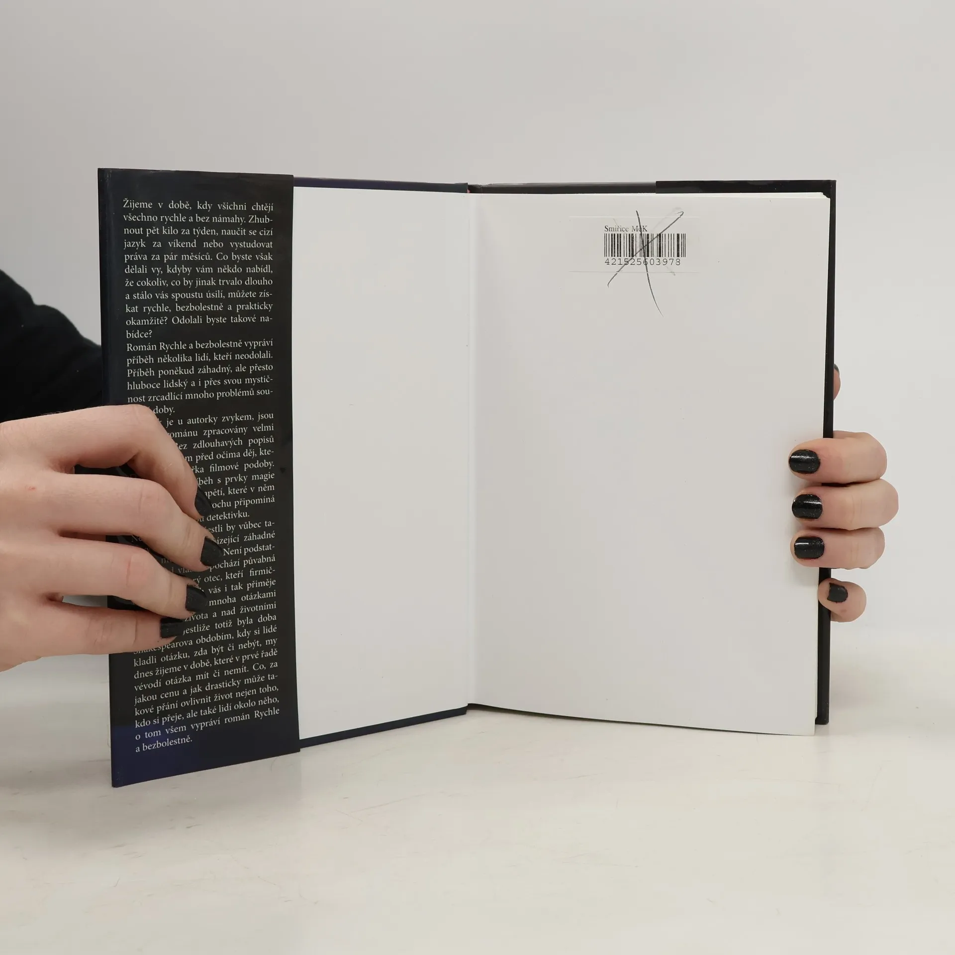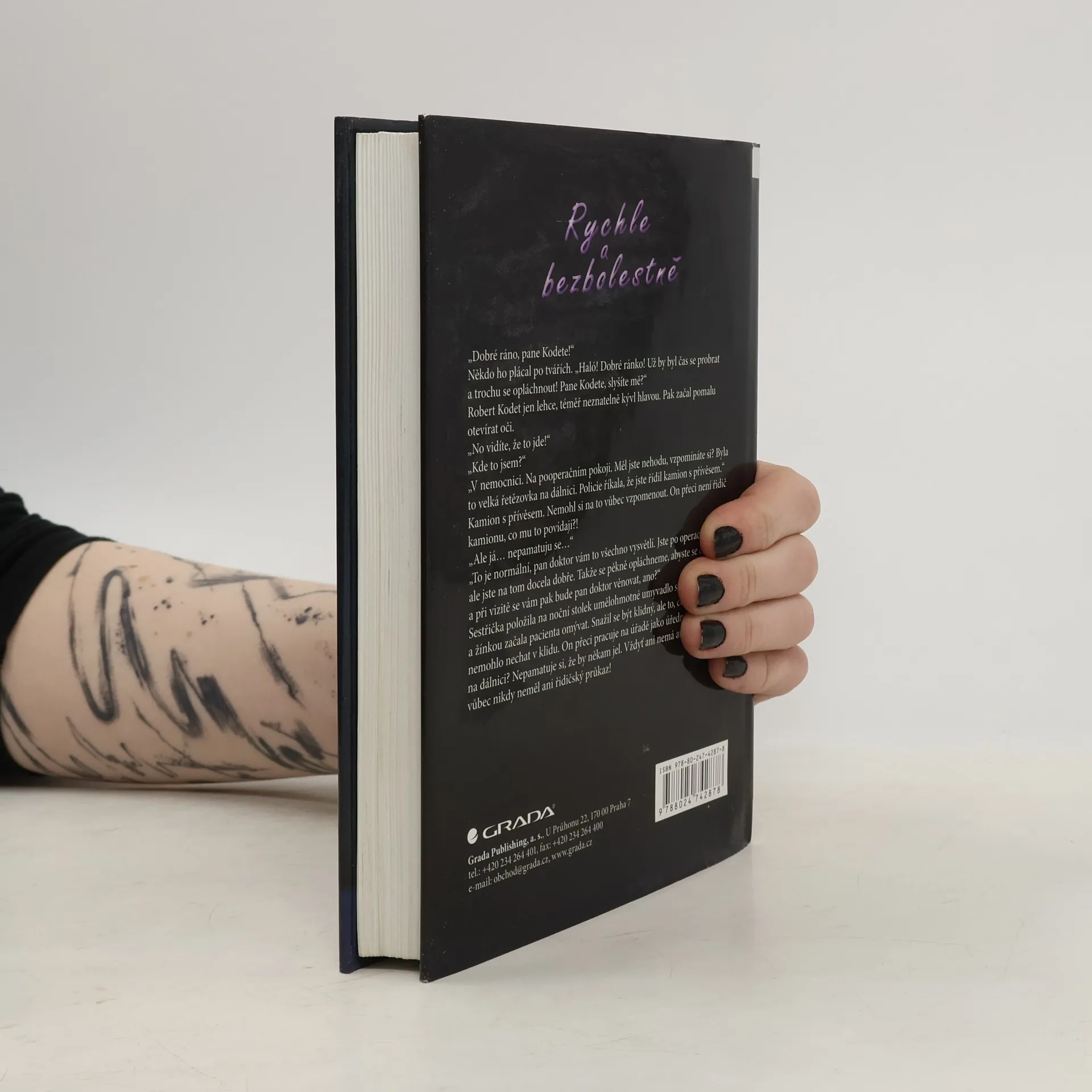 "Včera tam ještě nebyl. Jen prázdné, špinavé výlohy. Dnes, s úderem deváté, se tu objevil. Aranžérka pověsila do výlohy velký plakát a nad vchodem se rozsvítil neonový nápis: Rychle a bezbolestně. Nic víc. Nový obchod na pěší zóně v Praze." Tak začíná poutavý román RYCHLE A BEZBOLESTNĚ, autorky Markéty Dočekalové, který vám tentokrát předkládá nevšední příběh plný magie a napětí. Kdo by nechtěl získat něco rychle a bez námahy? Třeba se naučit cizí jazyk, nebo zhubnout lusknutím prstů? Stačí jediný podpis a přání může být splněno. V románu se proplétají osudy postav, které nabídce neodolaly, ale i těch, jejichž osud změnili jiní. V životě však nic není zadarmo a každý za své přání jednoho dne zaplatí.