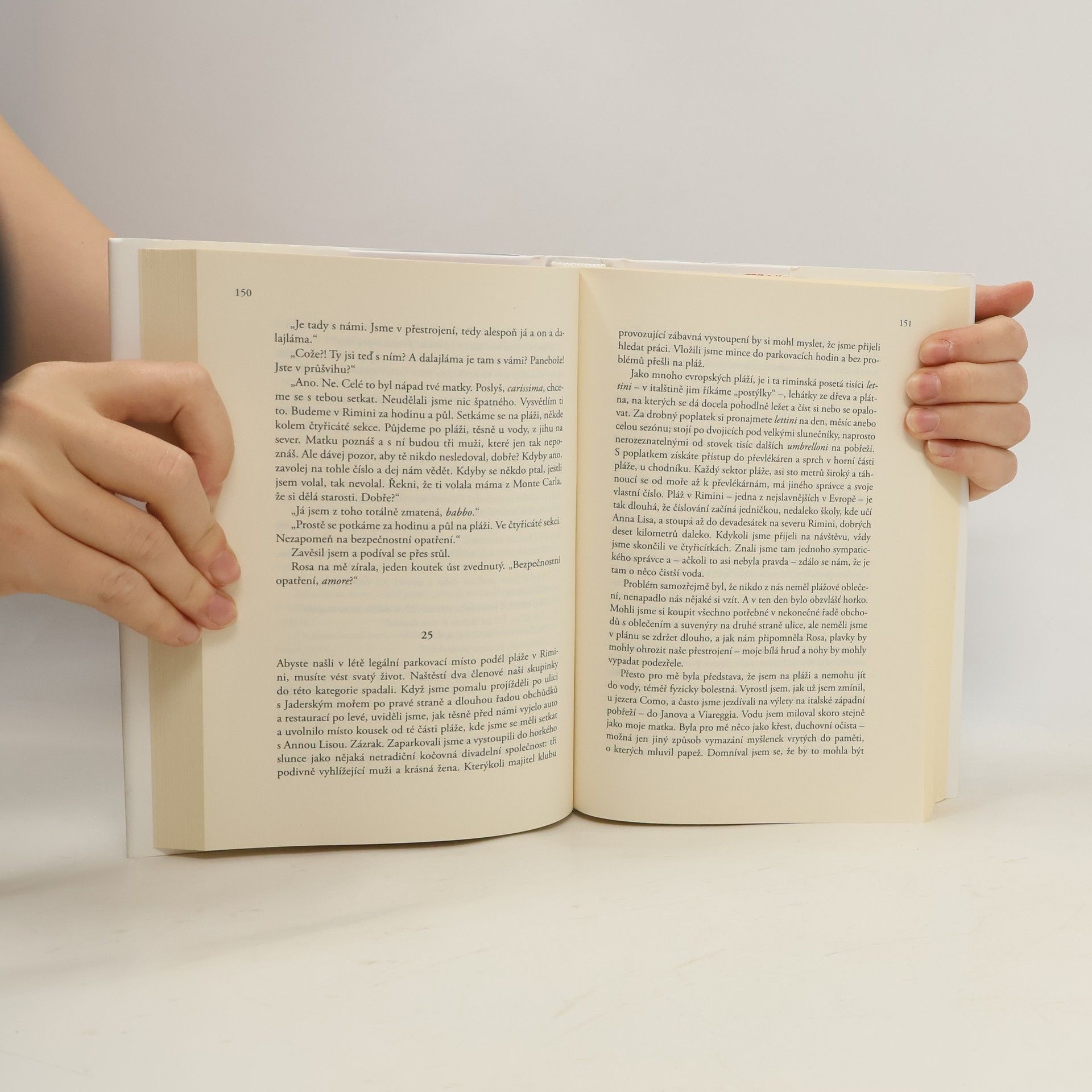 Prázdniny papeže s dalajlámou. Hravý, pozitivní román Rolanda Merulla předkládá bizarní situaci – dva nejsvětější muži na světě se setkají ve Vatikánu a zjistí, že by si potřebovali dopřát krátkou – neoficiální! – dovolenou. Když se jim podaří tento neotřelý nápad realizovat a ocitnou se v malebné italské krajině, znovu objevují každodenní krásy i výzvy obyčejného života. Na cestě je doprovází papežův lehce neurotický bratranec Paulo, který je zároveň osobním asistentem papeže, a jeho žena Rosa, excentrická a temperamentní podnikatelka, která všem zajistí dokonalé přestrojení. Jen díky Paulovi a Rose se oběma váženým mužům podaří z Vatikánu nepozorovaně proklouznout a několik dní v utajení putovat po italském venkově. Tato různorodá čtveřice se vydává na společnou cestu, jakousi expedici k sobě samým. A každému z nich oněch pár plných, neobvyklých, a přitom obyčejných dnů přinese mnoho nového a inspirativního. Co se stane, když se papež s dalajlámou dohodnou, že potřebují dovolenou v utajení?