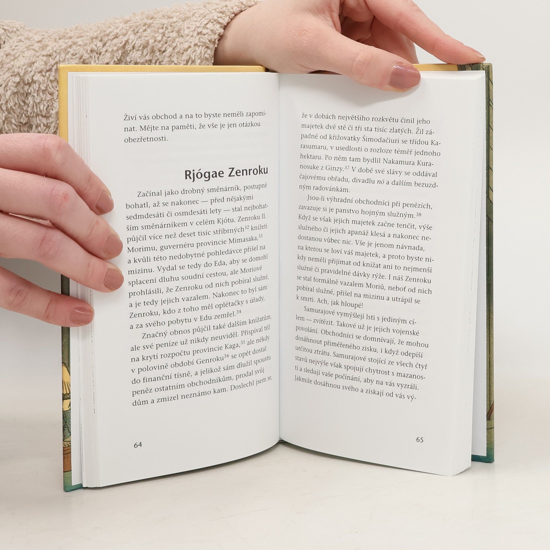 Kniha nás zavádí do světa japonských obchodníků druhé poloviny 17. století. Na životních osudech padesáti pěti bohatých obchodnických rodů autor přesvědčivě dokazuje, že předpokladem úspěchu a dlouhodobé prosperity je nejen pracovitost a obezřetnost, ale také dodržování základních morálně-etických norem. Zápisky patří k zlatému fondu japonské literatury období Tokugawa.