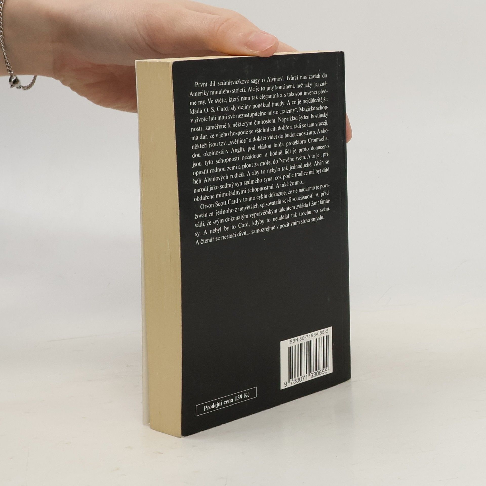 První díl sedmisvazkové ságy o Alvinovi Tvůrci nás zavádí do Ameriky minulého století. Ale je to jiný kontinent, než jaký jej známe my. Ve světě, který nám tak elegantně a s takovou invencí předkládá O. S. Card, šly dějiny poněkud jinudy. A co je nejdůležitější: v životě lidí mají své nezastupitelné místo „talenty“. Magické schopnosti, zaměřené k některým činnostem. Například jeden hostinský má dar, že v jeho hospodě se všichni cítí dobře a rádi se tam vracejí, někteří jsou tzv. „světlice“ a dokáží vidět do budoucnosti atp. A shodou okolností v Anglii, pod vládou lorda protektora Cromwella, jsou tyto schopnosti nežádoucí a hodně lidí je proto donuceno opustit rodnou zemi a plout za moře, do Nového světa. A to je i příběh Alvinových rodičů. A aby to nebylo tak jednoduché, Alvin se narodí jako sedmý syn sedmého syna, což podle tradice má být dítě obdařené mimořádnými schopnostmi. A také že ano…