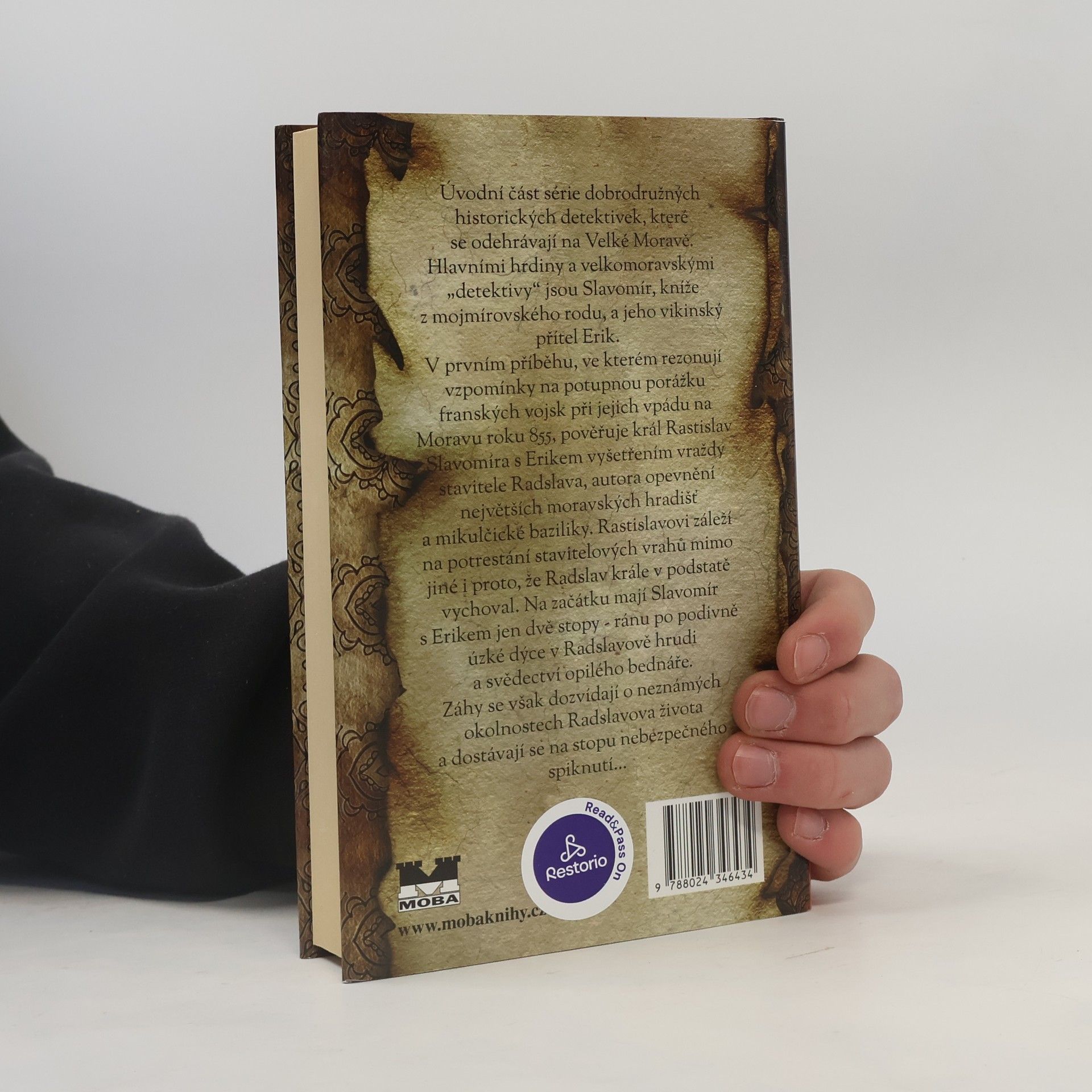 Úvodní část série dobrodružných historických detektivek, které se odehrávají na Velké Moravě. Hlavními hrdiny a velkomoravskými „detektivy“ jsou Slavomír, kníže z mojmírovského rodu, a jeho vikinský přítel Erik. V prvním příběhu, ve kterém rezonují vzpomínky na potupnou porážku franských vojsk při jejich vpádu na Moravu roku 855, pověřuje král Rastislav Slavomíra s Erikem vyšetřením vraždy stavitele Radslava, autora opevnění největších moravských měst a mikulčické baziliky. Rastislavovi záleží na potrestání stavitelových vrahů mimo jiné i proto, že Radslav krále v podstatě vychoval. Na začátku mají Slavomír s Erikem jen dvě stopy - ránu po podivně úzké dýce v Radslavově hrudi a svědectví opilého bednáře. Záhy se však dozvídají o neznámých okolnostech Radslavova života a dostávají se na stopu nebezpečného spiknutí...