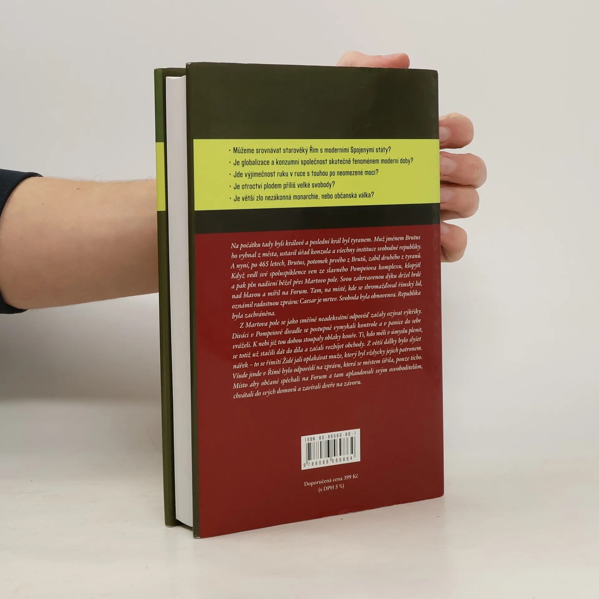 Římská republika byla bezesporu nejpozoruhodnějším státem v dějinách. Hrstka vesničanů se usadila mezi bažinami a pahorky a jejich potomci dobyli celý tehdy známý svět. Hollandova kniha přináší živý obraz republiky v zenitu její velikosti, která měla nakonec stát u počátku jejího pádu a transformace v císařskou diktaturu. Zachycuje období Julia Caesara, jehož posedlost slávou dovedla až k břehům říčky Rubikon, éru Cicerona, vášnivého a výřečného obránce svobody, či Spartaka, otroka, který se odvážil čelit supervelmoci. Římané jsou nám vzdáleni dva tisíce let, ale jejich ambice a touhy, sebeobětování a masakry, všední život, zábava i politika, jako by se zrcadlily v naší moderní společnosti. Kniha je nečekaně aktuální i z jiného důvodu: současné Spojené státy jsou po Římě totiž teprve druhou republikou, která je v postavení světové supervelmoci bez jediného konkurenta.