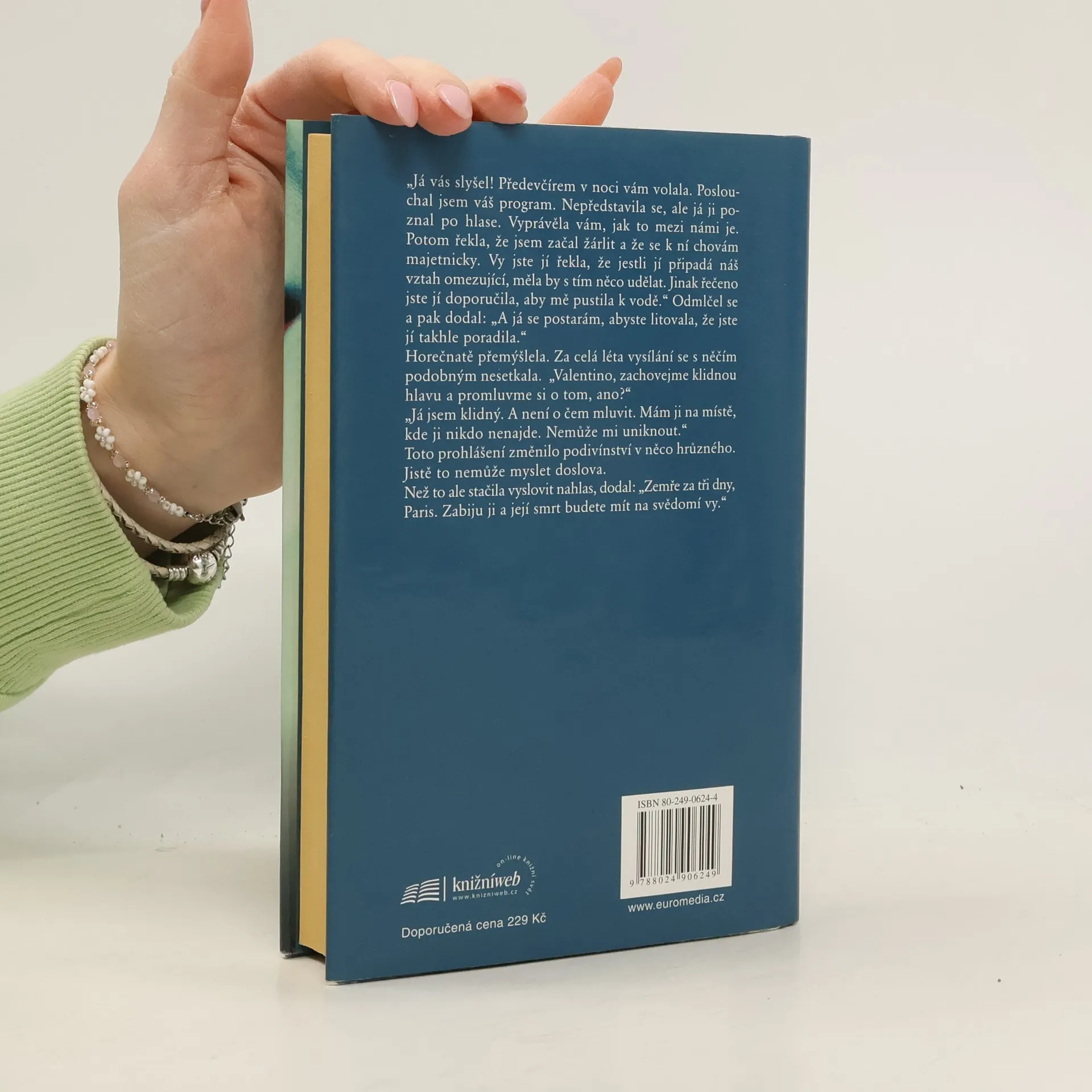 Večer co večer usedá Paris Gibsonová k mikrofonu, aby v nočním rozhlasovém vysílání z texaského Austinu oslovila tisíce anonymních posluchačů. Jsou jejím spojením se světem a ona pro ně představuje přítelkyni, jíž se mohou svěřit se svým trápením i úspěchy. Příjemná setkávání v éteru se však změní v noční můru, když jí mužský hlas na druhém konci linky oznámí, že v nejbližších dvaasedmdesáti hodinách zavraždí mladou dívku a pak se vypořádá přímo s Paris. Moderátorka to sdělí policii a začne zoufalý závod s časem. Do hry vstupuje policejní vyjednavač, psycholog Dean Malloy, kterého Paris dobře zná. Právě kvůli němu totiž odešla z Houstonu do Austinu a setkat se s ním znovu za takových okolností pro ni vůbec není snadné. Jak se zdá, hrozba neznámého zabijáka bude pro Paris znamenat i hořkou cestu do minulosti, na jejímž konci však možná čeká příslib nového začátku... Přeložila Marie Válková. Váz., 416 stran, 12,5 x 20 cm