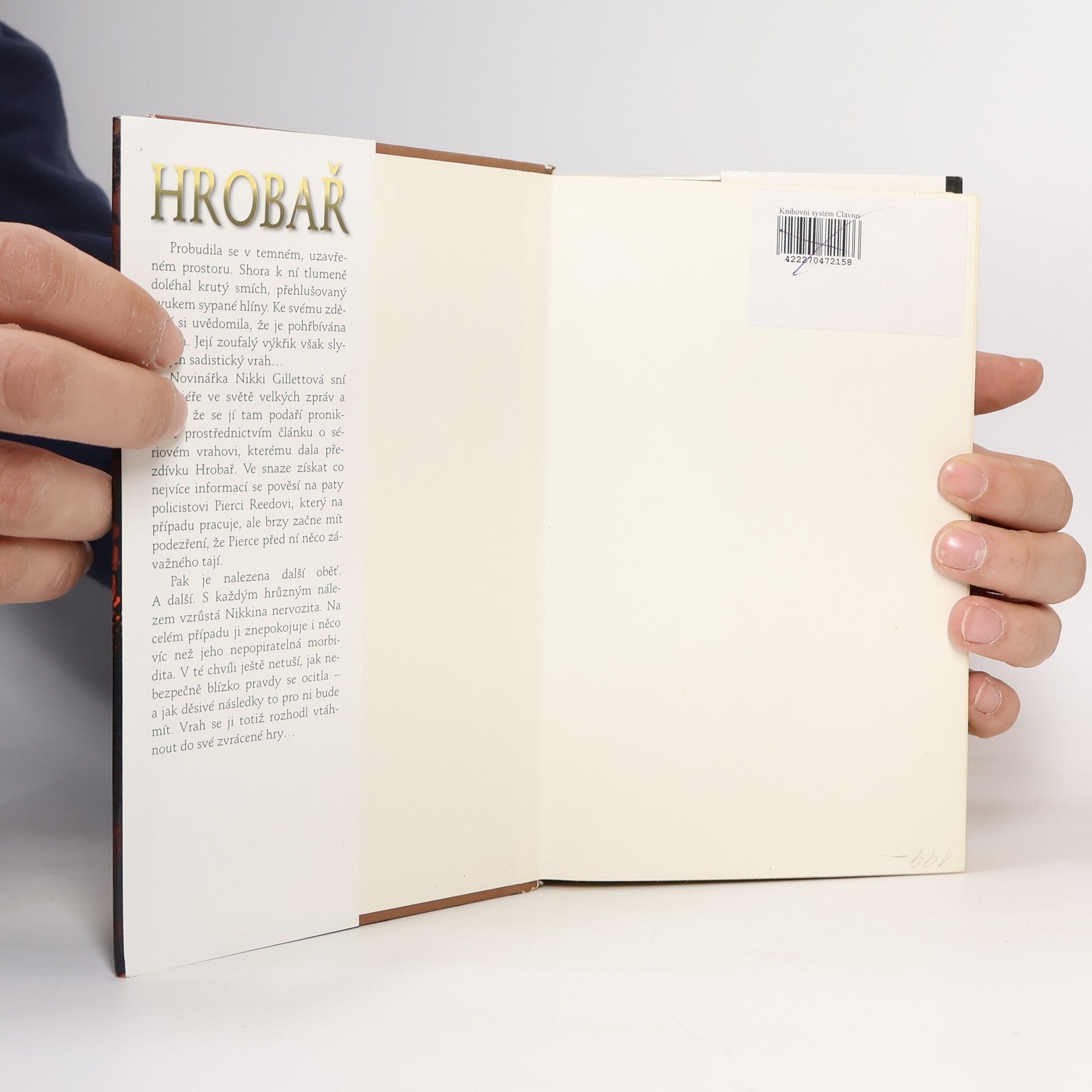 Probudila se v temném, uzavřeném prostoru. Shora k ní tlumeně doléhal krutý smích, přehlušovaný zvukem sypané hlíny. Ke svému zděšení si uvědomila, že je pohřbívána zaživa. Její zoufalý výkřik však slyšel jen sadistický vrah... Novinářka Nikki Gillettová sní o kariéře ve světě velkých zpráv a doufá, že se jí tam podaří proniknout prostřednictvím článku o sériovém vrahovi, kterému dala přezdívku Hrobař. Ve snaze získat co nejvíce informací se pověsí na paty policistovi Pierci Reedovi, který na případu pracuje, ale brzy začne mít podezření, že Pierce před ní něco závažného tají. Pak je nalezena další oběť. A další. S každým hrůzným nálezem vzrůstá Nikkina nervozita. Na celém případu ji znepokojuje i něco víc než jeho nepopiratelná morbidita. V té chvíli ještě netuší, jak nebezpečně blízko pravdy se ocitla – a jak děsivé následky to pro ni bude mít. Vrah se ji totiž rozhodl vtáhnout do své zvrácené hry...