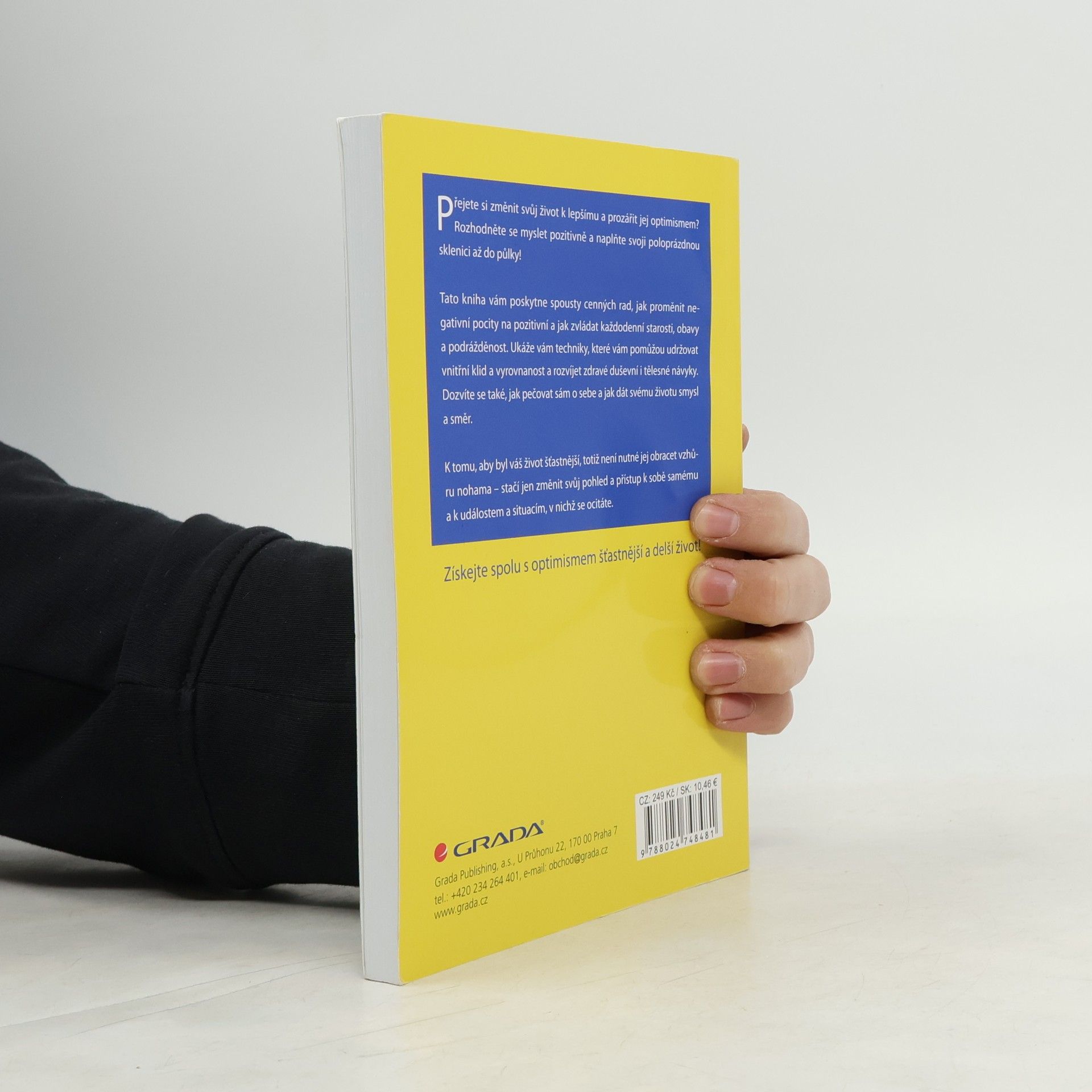 Jak myslet pozitivně a vyhnout se negativnímu myšlení, které vás svazuje? Jaké techniky vám pomůžou rozvinout zdravé duševní návyky? Pomocí jakých jednoduchých kroků změníte své negativní pocity na pozitivní? Jak čelit obavám a úzkosti? Jak zvládnout hněv a podráždění? Jak se vypořádat s negativně uvažujícími lidmi a omezit jejich vliv na sebe? Pozitivně myslet neznamená radovat se z prohry či bolesti, ani ignorovat a přehlížet problémy, je to schopnost akceptovat veškeré vzestupy a pády života, cítit vděk za to, co máme, a dívat se do budoucnosti s optimismem a nadějí. Díky této knížce se pro vás pozitivní myšlení stane vlastním a více si užijete života se všemi jeho stránkami. (jak změnit svůj přístup a dívat se na život optimisticky)