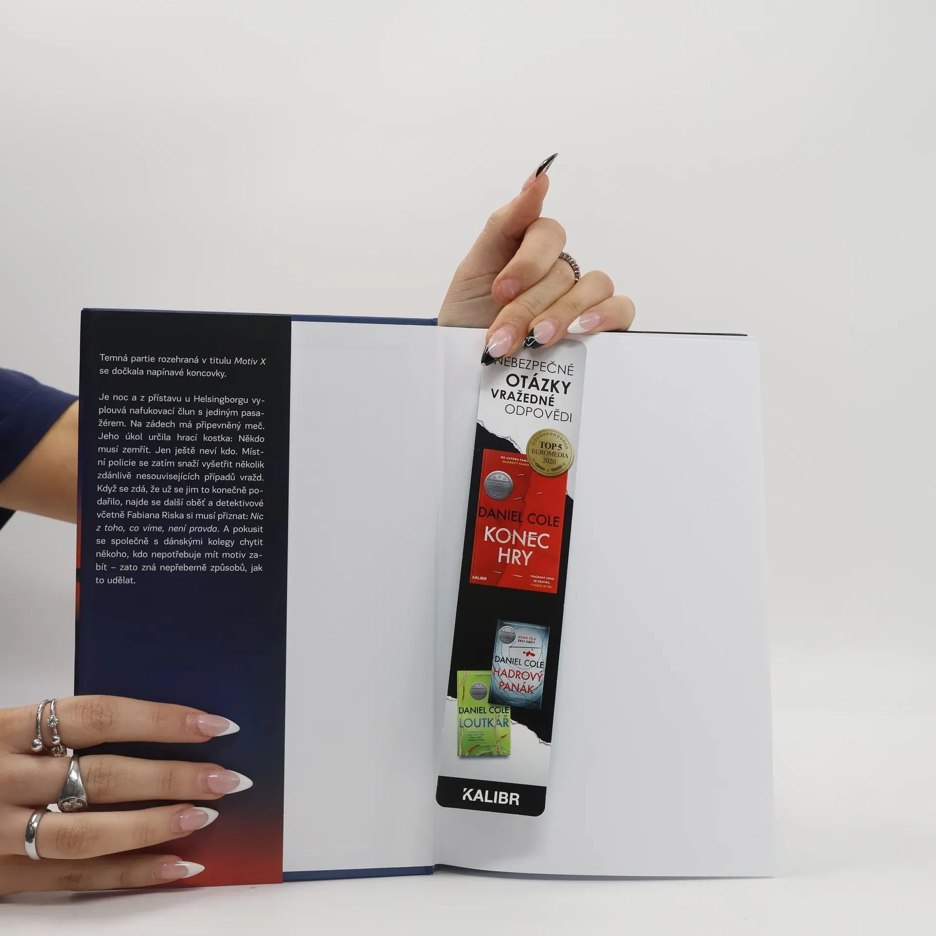 Thriller švédského bestselleristy Stefana Ahnhema dohrává napínavou partii titulu Motiv X. Za každou vraždou se skrývá motiv. V jistých případech je to však bohužel pouhá iluze. Je noc a z přístavu u Helsingborgu vyplouvá nafukovací člun s jediným pasažérem. Na zádech má připevněný meč. Jeho úkol určila hrací kostka: Někdo musí zemřít. Jen ještě neví kdo. Místní policie se zatím snaží vyšetřit několik zdánlivě nesouvisejících případů vražd. Když se zdá, že už se jim to konečně podařilo, najde se další oběť a detektivové včetně Fabiana Riska si musí přiznat: Nic z toho, co víme, není pravda. A pokusit se společně s dánskými kolegy chytit někoho, kdo nepotřebuje mít motiv zabít – zato zná nepřeberně způsobů, jak to udělat.