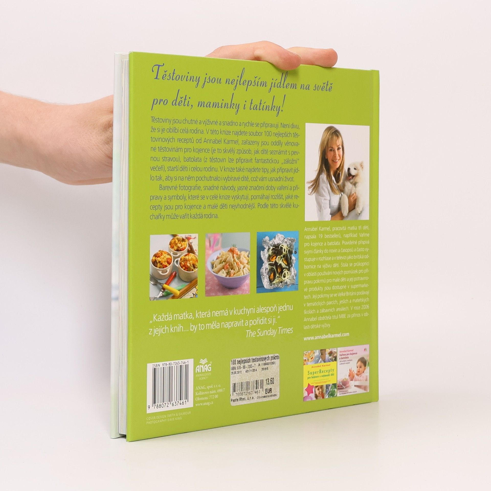 Těstoviny jsou chutné a výživné a snadno a rychle se připravují. Není divu, že si je oblíbí celá rodina. V této knize najdete soubor 100 nejlepších těstovinových receptů od Annabel Karmel, zařazeny jsou oddíly věnované těstovinám pro kojence (je to skvělý způsob, jak dítě seznámit s pevnou stravou), batolata (z těstovin lze připravit fantastickou „záložní“ večeři), starší děti i celou rodinu. Annabel Karmel si poradí i s vybíravými jedlíky. V knize 100 nejlepších těstovinových pokrmů také najdete tipy, jak připravit jídlo tak, aby si na něm pochutnalo i vybíravé dítě, což vám usnadní život. Srozumitelné a přehledné zpracování receptů. Barevné fotografie, snadné návody, jasné značení doby vaření a přípravy a symboly, které se v celé knize vyskytují, pomáhají rozlišit, jaké recepty jsou pro kojence a malé děti nejvhodnější. Podle této skvělé kuchařky může vařit každá rodina.
