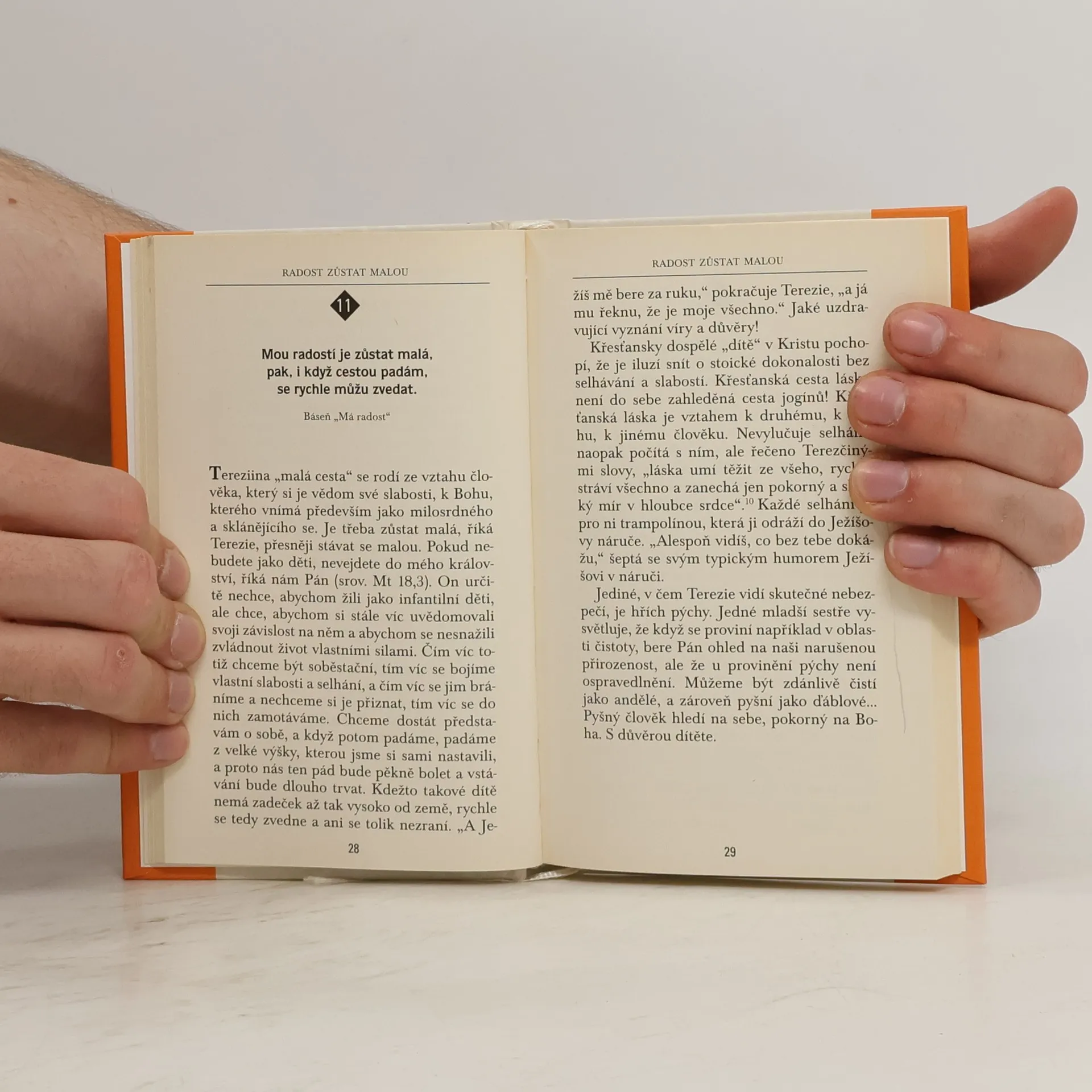 Předkládanou knížečku tvoří krátká zamyšlení nad vlastními slovy svaté Terezie z Lisieux (1873–1897), jíž od dětství fascinovala dynamika vztahu pozemského života a věčnosti, „už ano, a ještě ne“ plnosti křesťanského života. „Terezie ukazuje, jak napínavé a okouzlující je žít v důvěrném vztahu s Bohem. Všechno v ní hoří plamenem: láskou k Bohu, k bližnímu, k církvi, ke světu… Milovat Boha a s Bohem milovat svět se jí jeví jako to nejlepší dobrodružství. My jsme z křesťanství učinili cosi komplikovaného, kyselého, obtížného a nečasového… Bůh je věčně mladý a potřebuje mládí, které vyzařuje jeho temperament a humor. Lisieux je velmi aktuální.“ (Hans Urs von Balthasar)