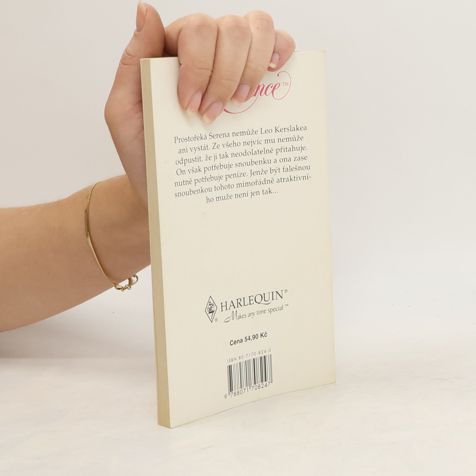 Prostořeká Serena nemůže Leo Kerslakea ani vystát. Ze všeho nejvíc mu nemůže odpustit, že ji tak neodolatelně přitahuje. On však potřebuje snoubenku, aby se zbavil vdavekchtivé partnerky, a ona zase potřebuje nutně peníze. A tak na jeho podivný návrh přistoupí. Jenže být falešnou snoubenkou tohoto mimořádně atraktivního muže, to není jen tak.