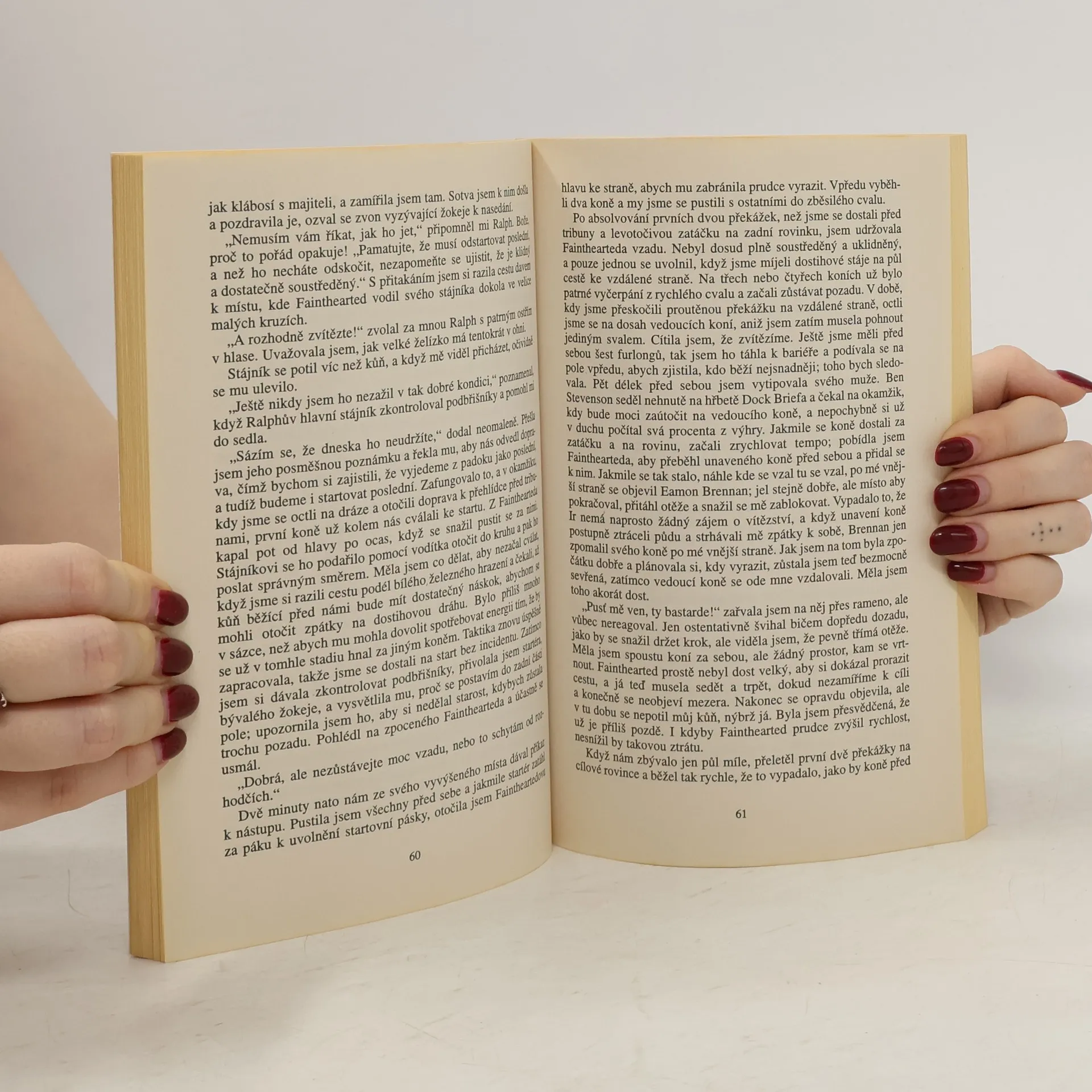 Když se Victoria Prydeová dočte v dostihovém tisku, že je její manžel Edward mrtev, považuje to zpočátku za nepodařený vtip. Jistě, čtrnáct dní byl nezvěstný, ale to si vysvětlovala tím, že se skrývá před bookmakery, jimž dlužil přílišvysoké částky. Policie obviní prvního podezřelého, trenéra Toma Radcliffa. Toho však Victoria miluje, a tak začne shánět důkazy o jeho nevině. Ví, že opravdový důvod k vraždě mohlo mít nejméně šest osob, které Edward vydíral…