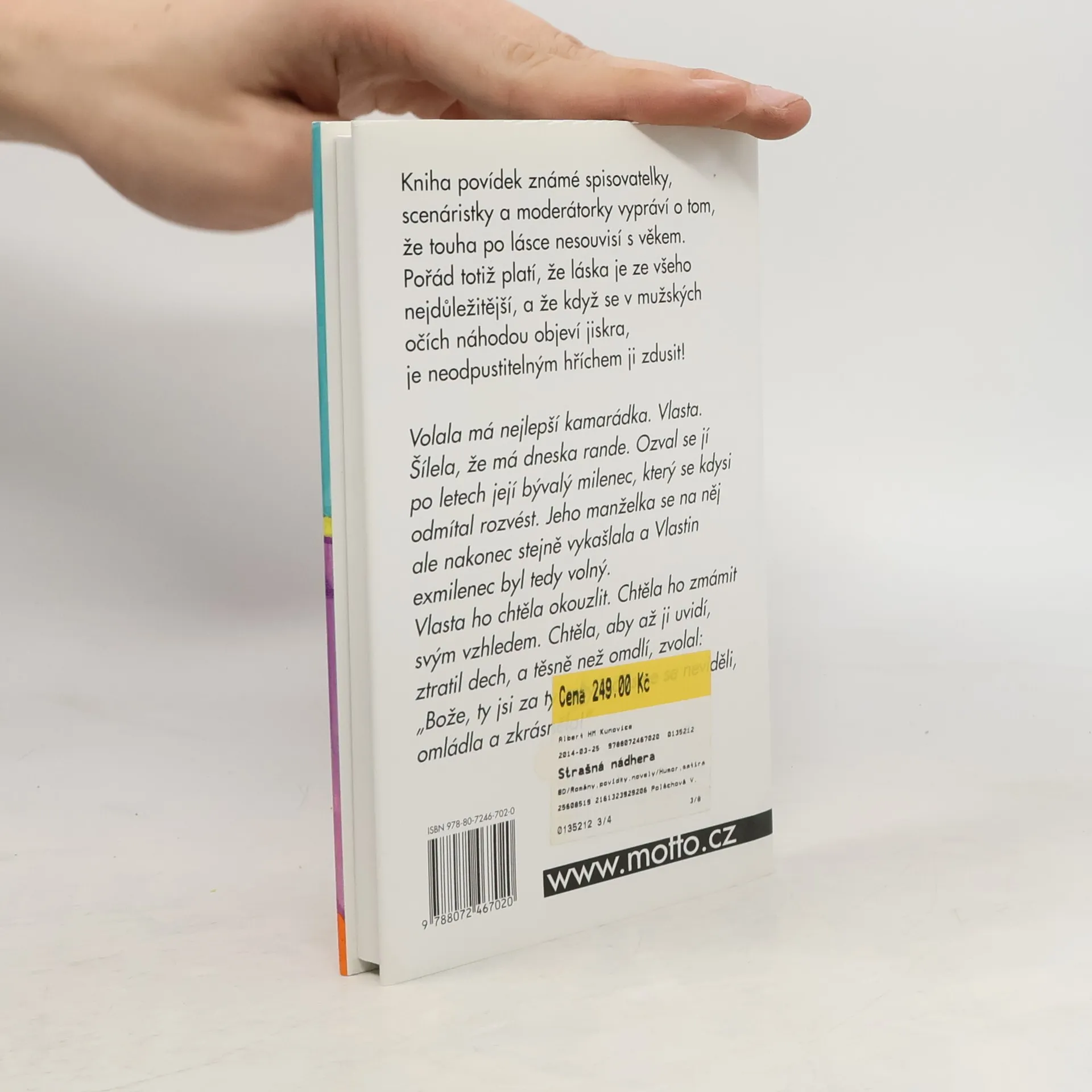 Nová kniha povídek známé spisovatelky, scénáristky a moderátorky vypráví o tom, že touha po lásce nesouvisí s věkem. Pořád totiž platí, že láska je ze všeho nejdůležitější, a že když se v mužských očích náhodou objeví jiskra, je neodpustitelným hříchem ji zdusit!