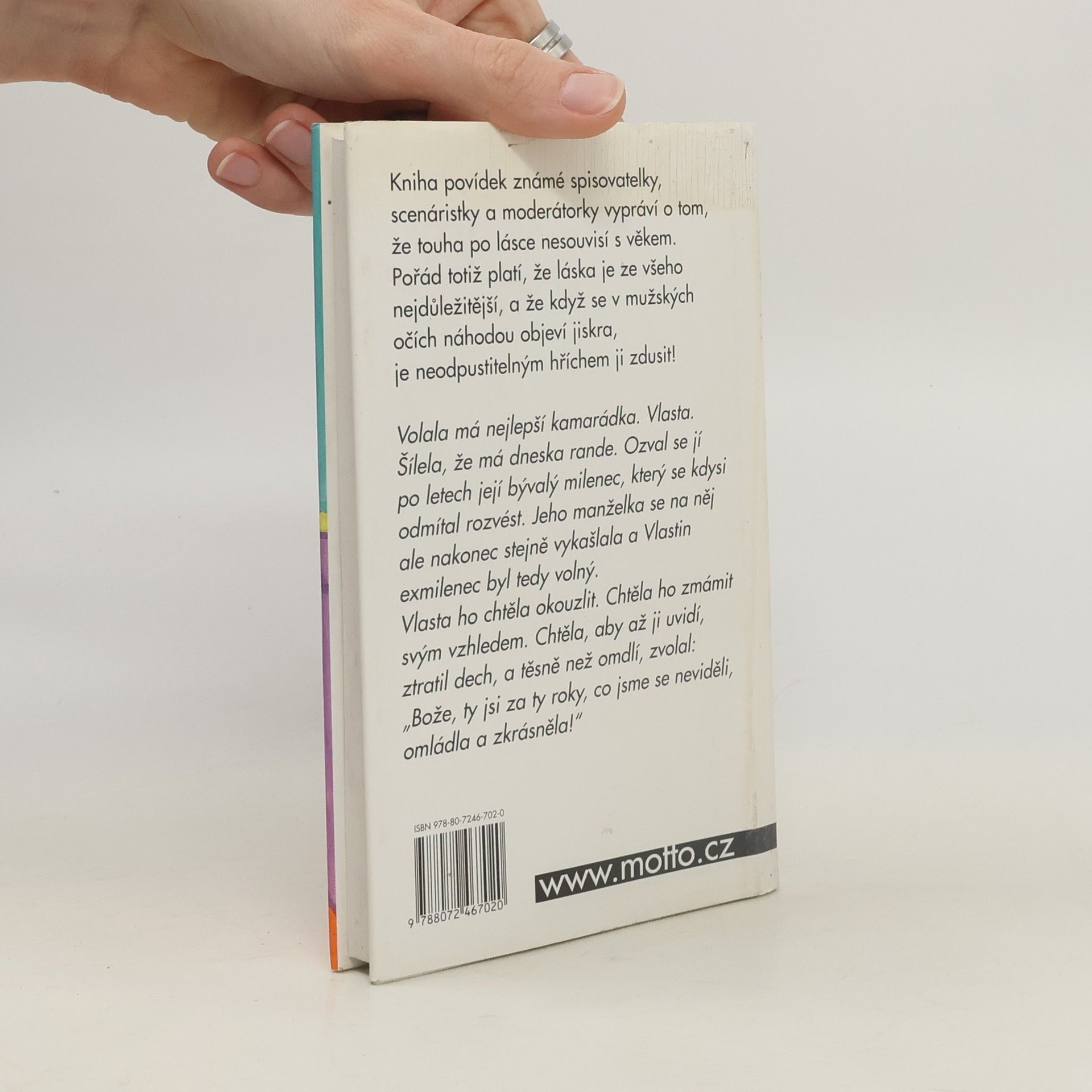 Nová kniha povídek známé spisovatelky, scénáristky a moderátorky vypráví o tom, že touha po lásce nesouvisí s věkem. Pořád totiž platí, že láska je ze všeho nejdůležitější, a že když se v mužských očích náhodou objeví jiskra, je neodpustitelným hříchem ji zdusit!