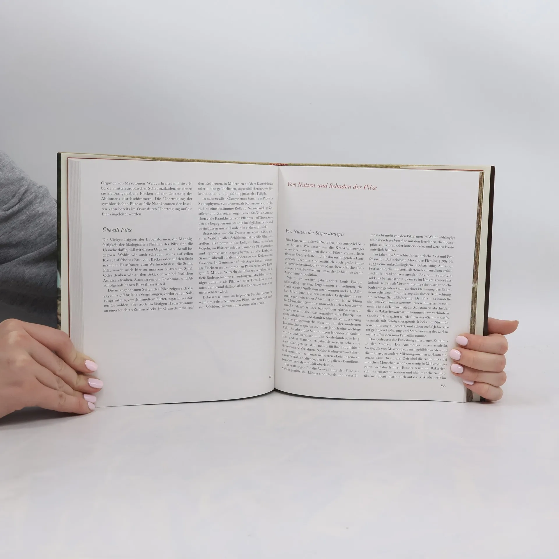 Dieses Sachbuch bietet eine anschauliche und fachlich fundierte Übersicht über die Mykologie. Es behandelt die Lebensweise der Pilze, ihre Sexualität, Anatomie und Morphologie der Fruchtkörper sowie ihre Ökologie und komplexen symbiontischen Beziehungen. Themen wie Gift- und Speisepilze, Mykotoxine, Pilzkulturen, Pilzschutz und Pilzkrankheiten werden ebenfalls behandelt. Pilze sind Teil unseres Alltags und können sowohl nützlich sein, etwa in Form von köstlichen Trüffeln, als auch erheblichen Schaden anrichten, wie bei Ernteverlusten durch Kartoffelschädlinge oder lästigen Nagelpilzen. Das Buch richtet sich an naturinteressierte Leser, die mehr über die Rolle der Pilze in der Natur und ihre Bedeutung für den Menschen erfahren möchten. Es ist auch für Pilzberater, Studierende der Biowissenschaften, Lehrkräfte sowie Praktiker in der Land- und Forstwirtschaft geeignet. Die thematisch gegliederten Texte ermöglichen eine gezielte Lektüre, während das Organismen-Register und die Inhaltsübersichten den Einstieg in die vielfältigen Inhalte erleichtern.