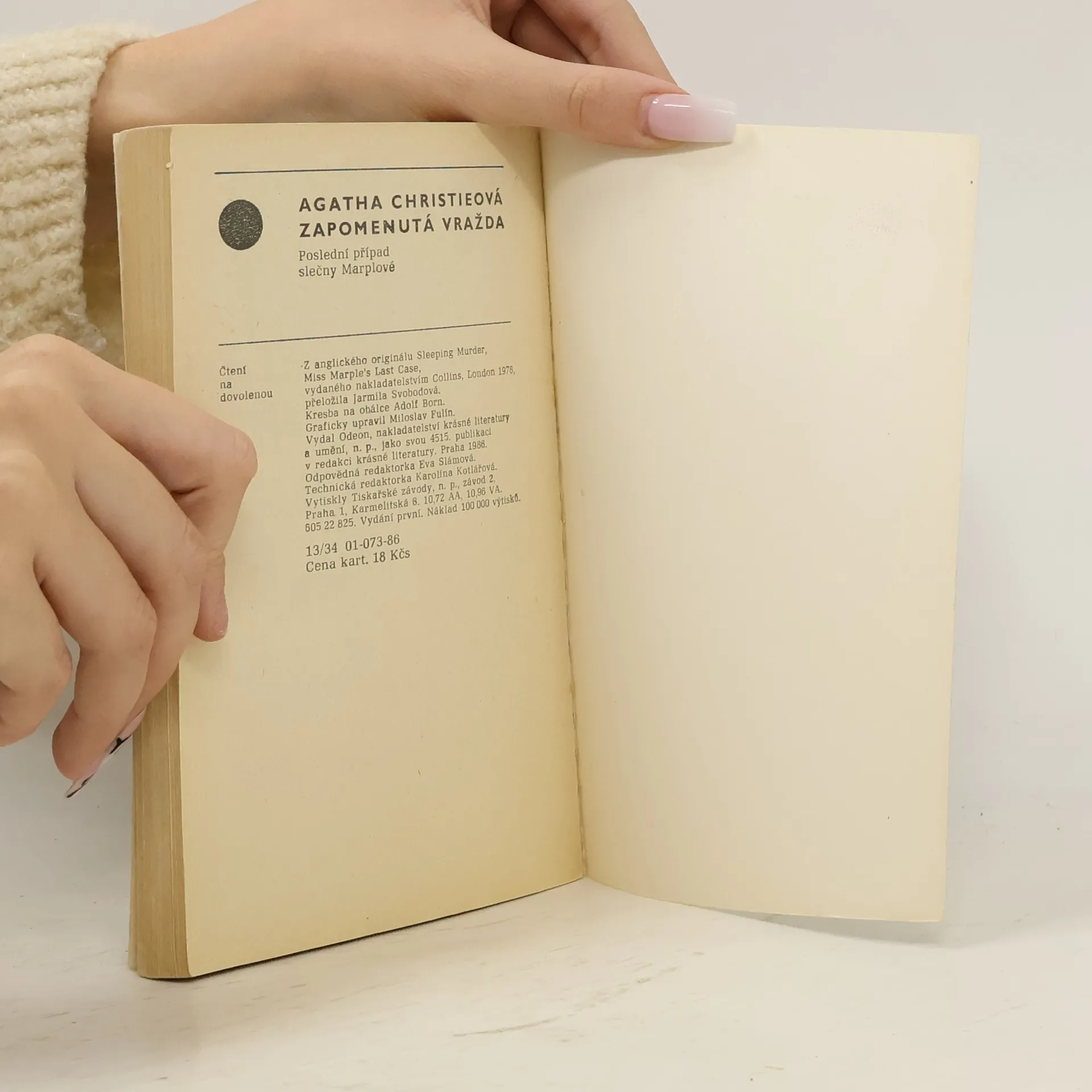 Poslední detektivní román slavné anglické autorky. Detektivní příběh nás zavádí do malého přímořského letoviska v jižní Anglii, kde si mladí novomanželé zakoupí dům. Mladá paní ale pomalu nabývá přesvědčení, že v tom domě už kdysi byla a zažila v něm vraždu.
