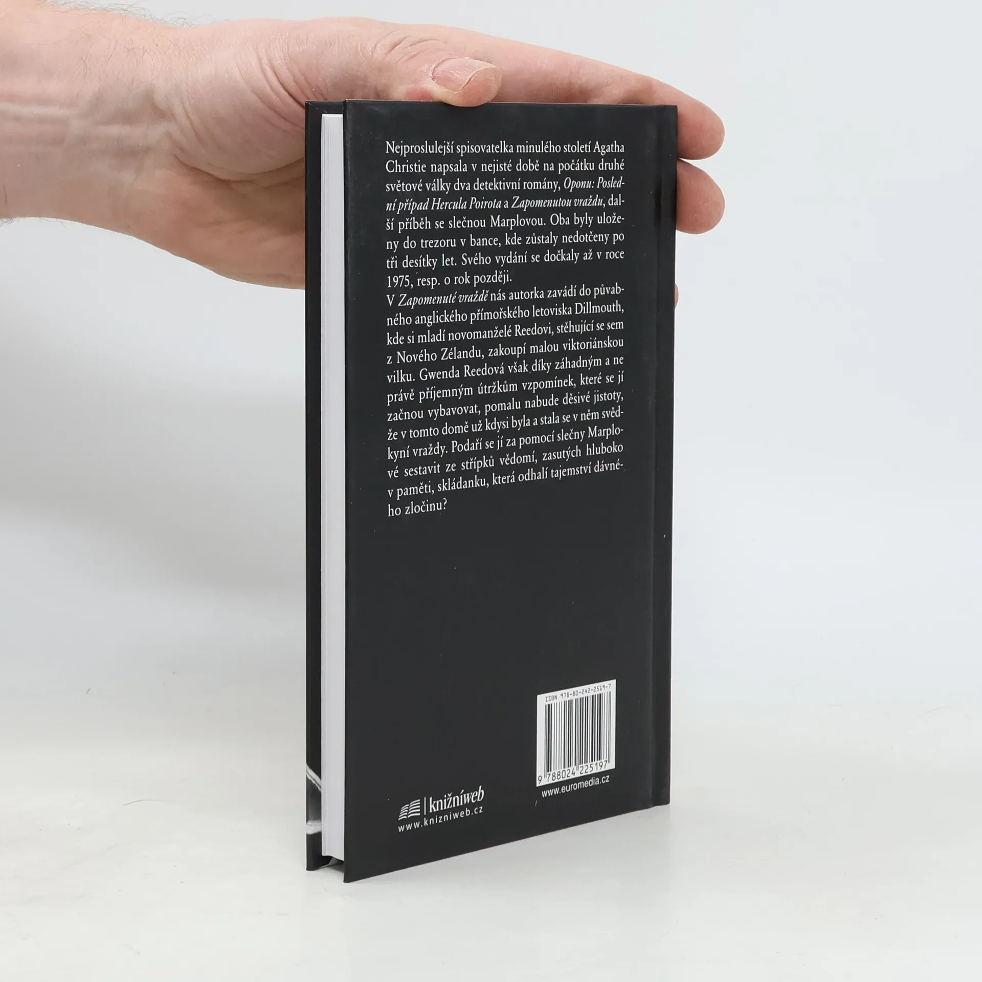 Nejproslulejší spisovatelka minulého století Agatha Christie napsala v nejisté době na počátku druhé světové války dva detektivní romány, Oponu: Poslední případ Hercula Poirota a Zapomenutou vraždu, další příběh se slečnou Marplovou. Oba byly uloženy do trezoru v bance, kde zůstaly nedotčeny po tři desítky let a svého vydání se dočkaly až v roce 1975, resp. o rok později. V Zapomenuté vraždě nás autorka zavádí do půvabného anglického přímořského letoviska Dillmouth, kde si mladí novomanželé Reedovi, stěhující se sem z Nového Zélandu, zakoupí malou viktoriánskou vilku. Gwenda Reedová však ale díky záhadným a ne právě příjemným útržkům vzpomínek, které se jí začnou vybavovat, pomalu nabude děsivé jistoty, že v tomto domě už kdysi byla a stala se v něm svědkyní vraždy. Podaří se jí za pomocí slečny Marplové sestavit ze střípků vědomí, zasutých hluboko v paměti, skládanku, která odhalí tajemství dávného zločinu?