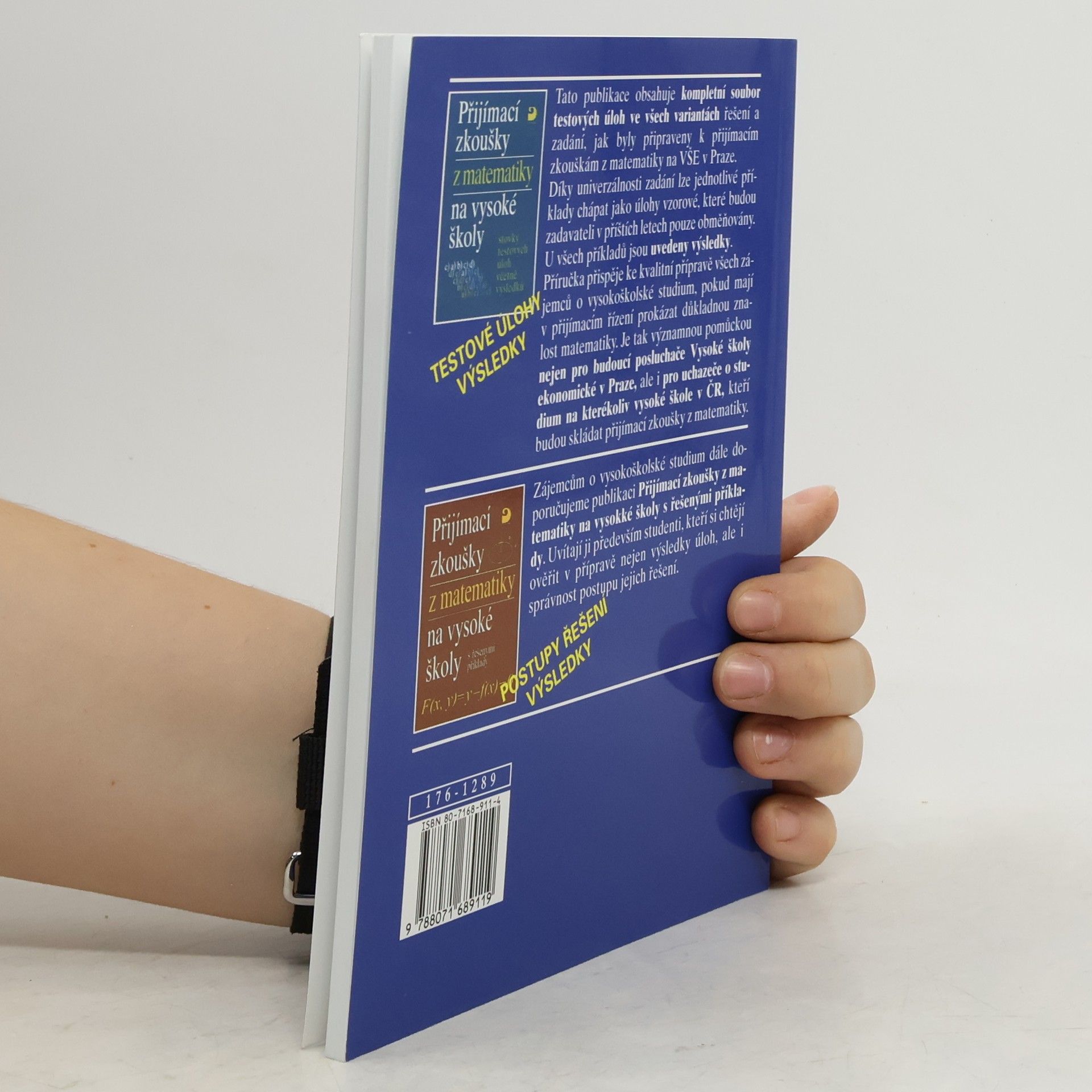Tato publikace obsahuje kompletní soubor testových úloh ve všech variantách řešení a zadání, jak byly připraveny k přijímacím zkouškám z matematiky na VŠE v Praze. Díky univerzálnosti zadání lze jednotlivé příklady chápat jako úlohy vzorové, které budou zadavateli v příštích letech pouze obměňovány. U všech příkladů jsou uvedeny výsledky. Příručka přispěje ke kvalitní přípravě všech zájemců o vysokoškolské studium pokud mají v přijímacím řízení prokázat důkladnou znalost matematiky. Je tak významnou pomůckou nejen pro budoucí posluchače Vysoké školy ekonomické v Praze, ale i pro uchazeče o studium na kterékoliv vysoké škole v ČR, kteří budou skládat přijímací zkoušky z matematiky.