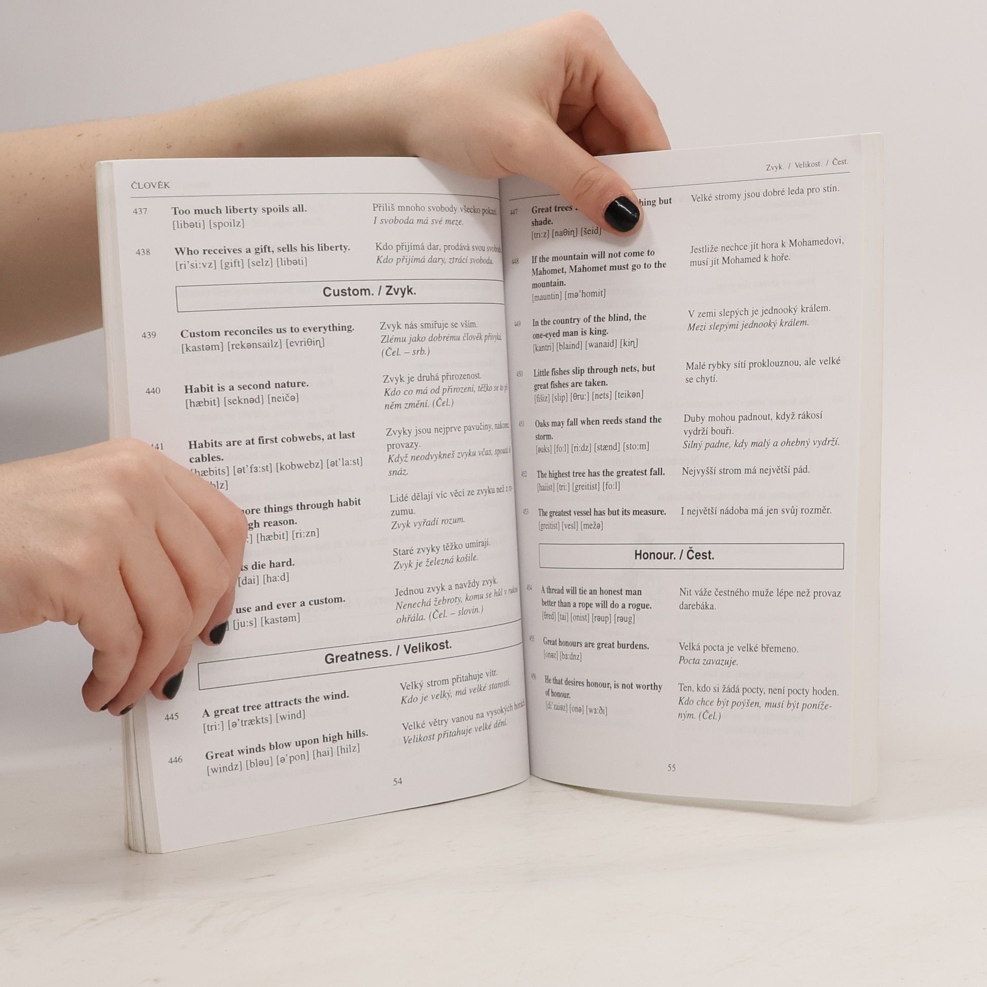Výborná pomůcka pro všechny, pro které je angličtina opravdovým koníčkem. Přehledný slovník anglických přísloví obsahuje doslovný překlad i český ekvivalent, který se mnohdy od doslovného překladu výrazně liší. Texty doprovází černobílé ilustrace.