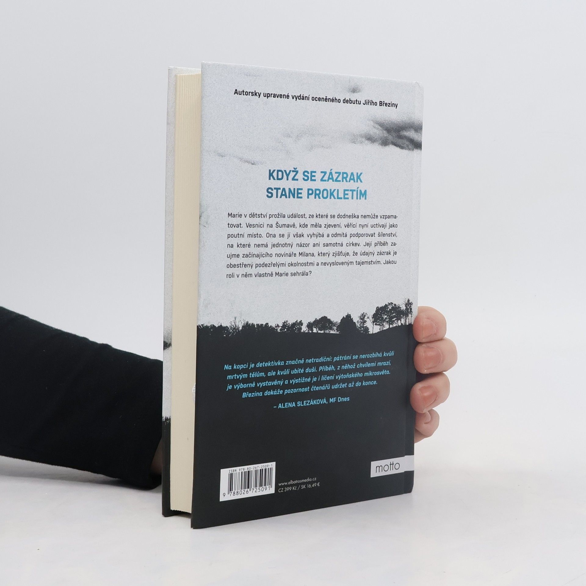 Když se zázrak stane prokletím. Upravený debut autora oceňovaných detektivek. Marie v dětství prožila událost, ze které se dodneška nemůže vzpamatovat. Vesnici na Šumavě, kde měla zjevení, věřící nyní uctívají jako poutní místo. Ona se jí však vyhýbá a odmítá podporovat šílenství, na které nemá jednotný názor ani samotná církev. Její příběh zaujme začínajícího novináře Milana, který zjišťuje, že údajný zázrak je obestřený podezřelými okolnostmi a nevysloveným tajemstvím. Jakou roli v něm vlastně Marie sehrála?