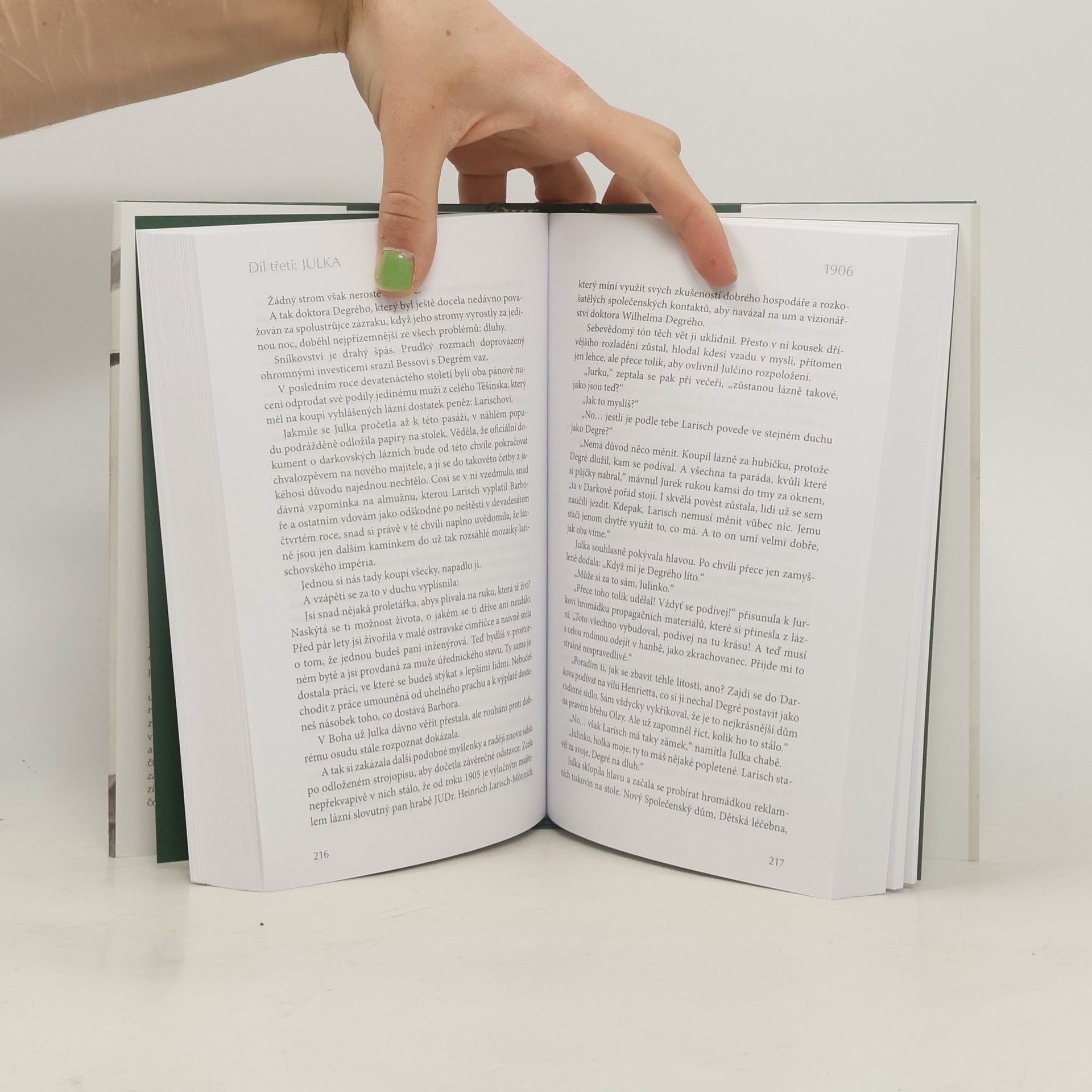 Románová kronika ztraceného města, léta 1894–⁠1921. Podtitul knihy lapidárně shrnuje příběh o někdejší pastevecké vesnici, která vystavěla svůj rozkvět na těžbě uhlí, aby o století později zašla na úbytě – také kvůli těžbě uhlí. Dnes už z výstavných budov a vznosné katedrály nezbylo nic. Jen šikmý kostel, který strmě a varovně ční do pusté krajiny. Kniha začíná obrovským důlním neštěstím roku 1894, které drsně zasáhlo do života obyvatel celého kraje. Patří mezi ně i hrdinové této knihy, jejichž pohnuté osudy můžeme po následující čtvrtstoletí sledovat. Barbora, Julka a Ludwik jsou představiteli tří naprosto odlišných dějových linií, které se však na mnoha místech proplétají a vytvářejí plastický obraz polozapomenutých časů, jejichž drsnost je pro dnešního čtenáře v mnoha ohledech téměř nepředstavitelná. Každý z hrdinů čelí životním výzvám po svém: někdo se jim trpně poddává, jiný se snaží uchopit šance, které mu kvasící doba nabízí. Do všech osudů však opakovaně a nemilosrdně zasahují velké dějiny, které úsilí obyčejného člověka mohou snadno proměnit na prach. Anebo ne. Příběh je vystavěn na skutečných událostech, z nichž mnohé doposud nebyly v české románově tvorbě zpracovány. Vyprávění ubíhá v dramatickém tempu a natolik autenticky, že se děj před očima čtenáře mnohdy mění na film zaznamenávající i to, co donedávna zůstávalo skryto ve třinácté komnatě české historie.
