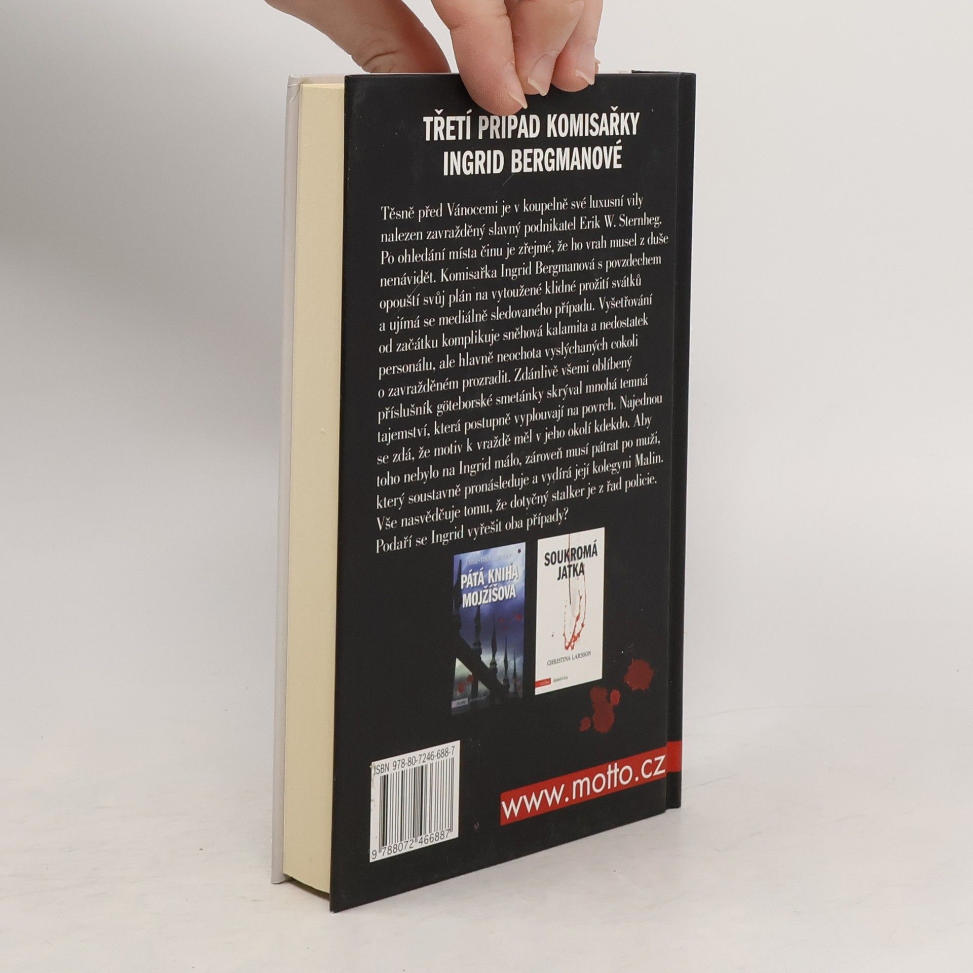 Těsně před Vánocemi je v koupelně své luxusní vily nalezen zavražděný slavný podnikatel Erik W. Sternheg. Po ohledání místa činu je zřejmé, že ho vrah musel z duše nenávidět. Komisařka Ingrid Bergmanová s povzdechem opouští svůj plán na vytoužené klidné prožití svátků a ujímá se mediálně sledovaného případu. Vyšetřování od začátku komplikuje sněhová kalamita a nedostatek personálu, ale hlavně neochota vyslýchaných cokoli o zavražděném prozradit. Zdánlivě všemi oblíbený příslušník göteborské smetánky skrýval mnohá temná tajemství, která postupně vyplouvají na povrch. Najednou se zdá, že motiv k vraždě měl v jeho okolí kdekdo. Aby toho na Ingrid nebylo málo, zároveň musí pátrat po muži, který soustavně pronásleduje a vydírá její kolegyni Malin. Vše nasvědčuje tomu, že dotyčný stalker je z řad policie. Podaří se Ingrid vyřešit oba případy?