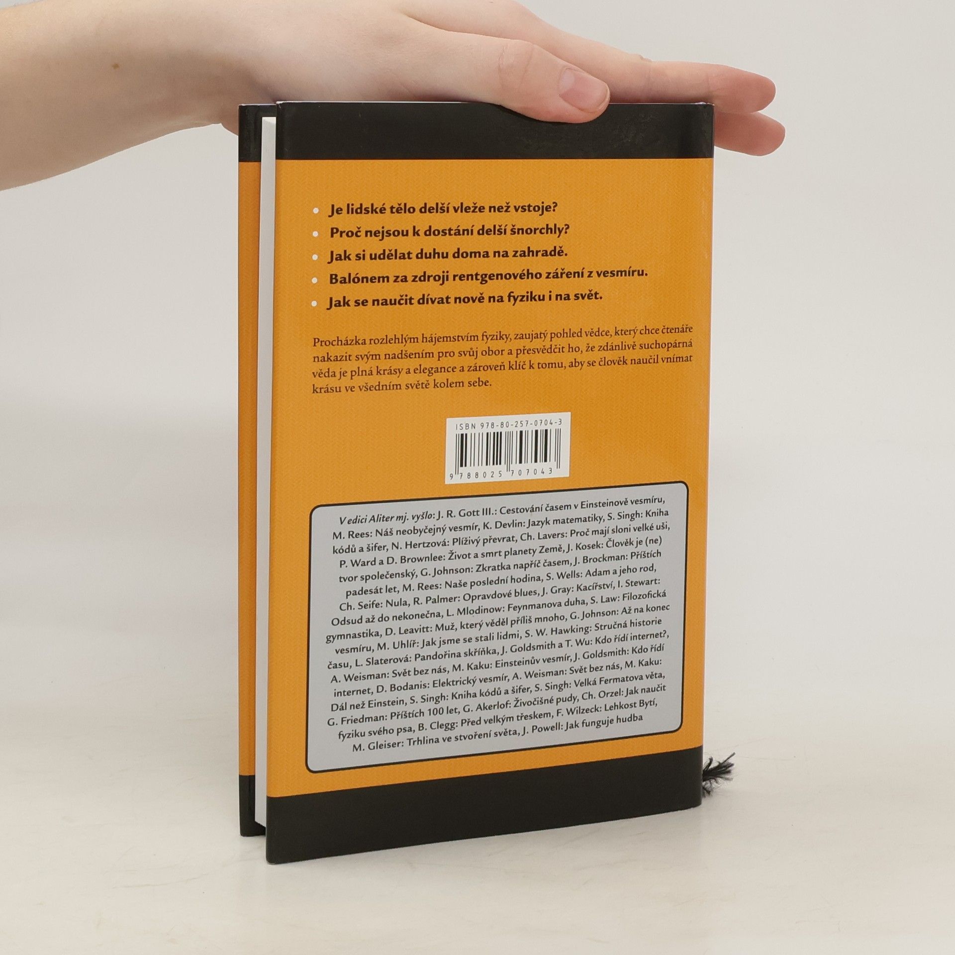 Od konce duhy až na okraj času - putování po divech fyziky. Walter Lewin vede na MIT přednášky ze základů fyziky. Proslavil se zejména přístupnou, zábavnou až výstřední formou, kterou svým přednáškám dává a která z něj udělala osobnost známou i mimo akademické prostředí (velké pozornosti se dočkaly záznamy z přednášek na YouTube). Lewin ve své knize ukazuje čtenáři, že fyzika je mocný a nádherný nástroj, s jehož pomocí lze proniknout ke skrytému mechanismu, jenž řídí běh světa kolem nás. Lewin o tom říká: Seznamuji lidi s jejich vlastním světem, světem, v němž žijí a který znají, ale nedívají se na ně jako fyzikové. Zatím."