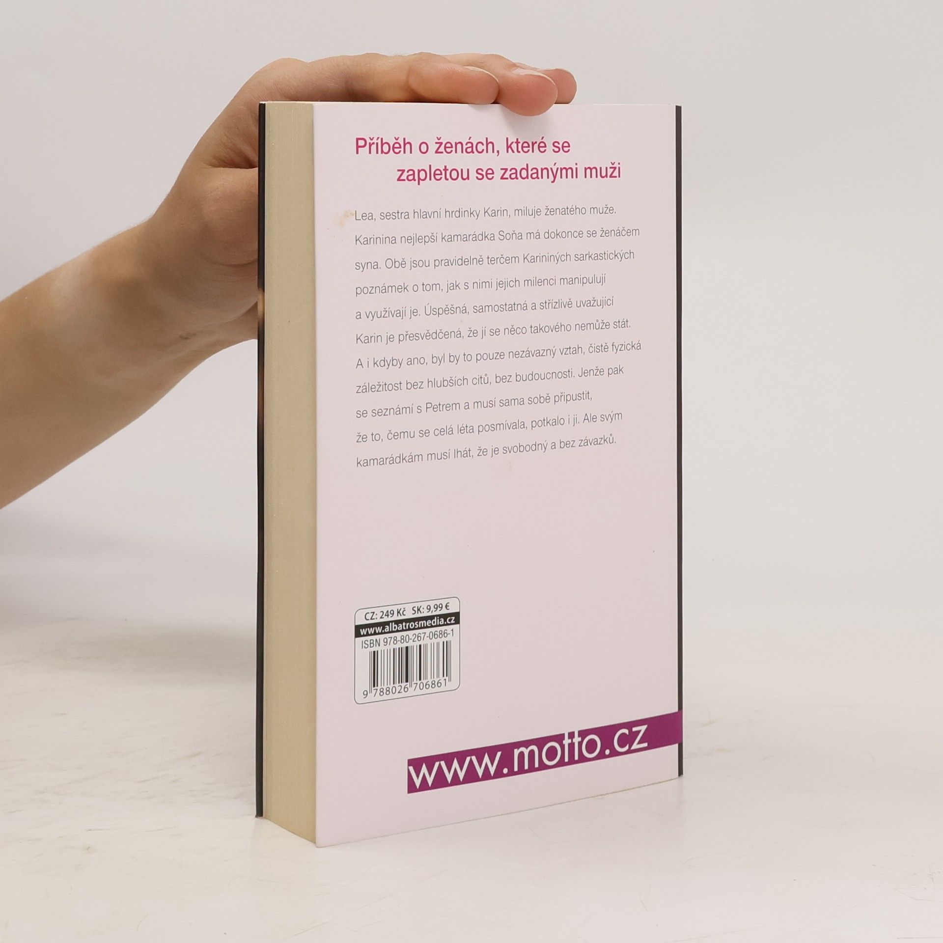 Příběh o ženách, které se zapletou se zadanými muži Lea, sestra hlavní hrdinky Karin, miluje ženatého muže. Karinina nejlepší kamarádka Soňa má dokonce se ženáčem syna. Obě jsou pravidelně terčem Karininých sarkastických poznámek o tom, jak s nimi jejich milenci manipulují a využívají je. Úspěšná, samostatná a střízlivě uvažující Karin je přesvědčená, že jí se něco takového nemůže stát. A i kdyby ano, byl by to pouze nezávazný vztah, čistě fyzická záležitost bez hlubších citů, bez budoucnosti. Jenže pak se seznámí s Petrem a musí sama sobě připustit, že to, čemu se celá léta posmívala, potkala i ji. Akorát že kamarádkám musí lhát, že je svobodný a bez závazků.